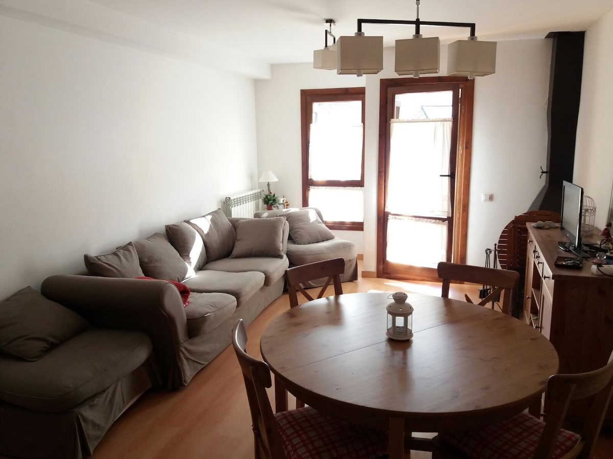 Bonito y soleado apartamento a pie de pistas de Baqueira/Beret Luminoso apartamento de dos habitaciones con dos baños que incluye guardaskis y opción de parking cubierto*. A menos de un minuto a pie del telecabina. ¡¡Reservando mi apartamento dispones de un 10% de descuento en alquiler de material de Ski!! *Parking cubierto: comporta pequeño coste adicional *Parking gratuito: a 10 minutos a pie