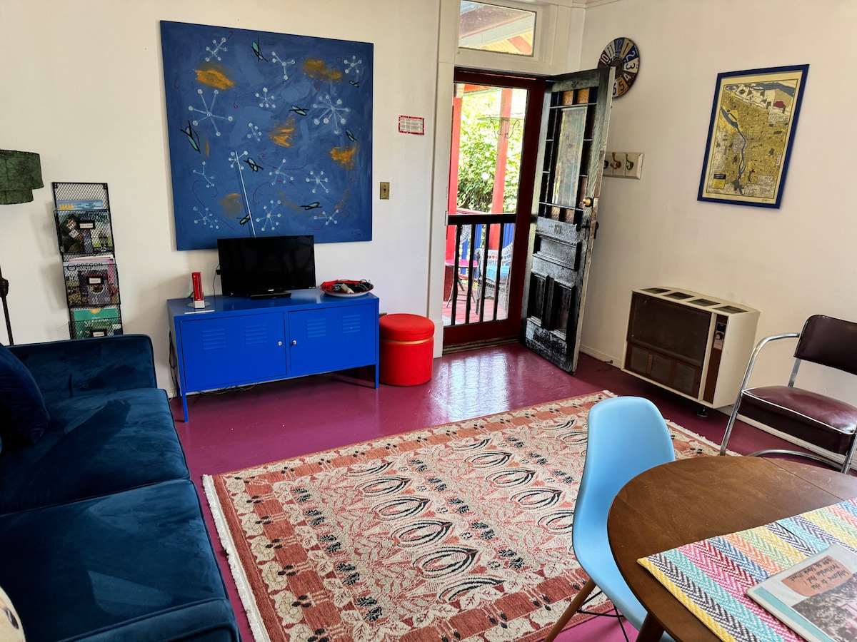 Elegante loft de 2 dormitorios en el paraíso culinario del distrito artístico de Alberta. Capacidad para 4 personas, 1 baño, 1200 pies cuadrados. Destacado: hermosa bañera de inmersión de jardín onsen japonés de roca de río para la máxima relajación. (Compartido con los huéspedes de la cabaña cuando está ocupada) Servicios: wifi, Netflix, cocina totalmente equipada. A pocos pasos de aclamados restaurantes: Gabbiano's, Dame, Lil Dame. En las cercanías: Expatriate, Take Two, Wilder, Jet Black Coffee. Parada de autobús n.º 72 en la puerta. El mejor panorama artístico y culinario de Portland desde tu sofisticado refugio.
