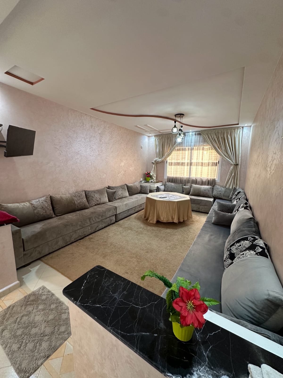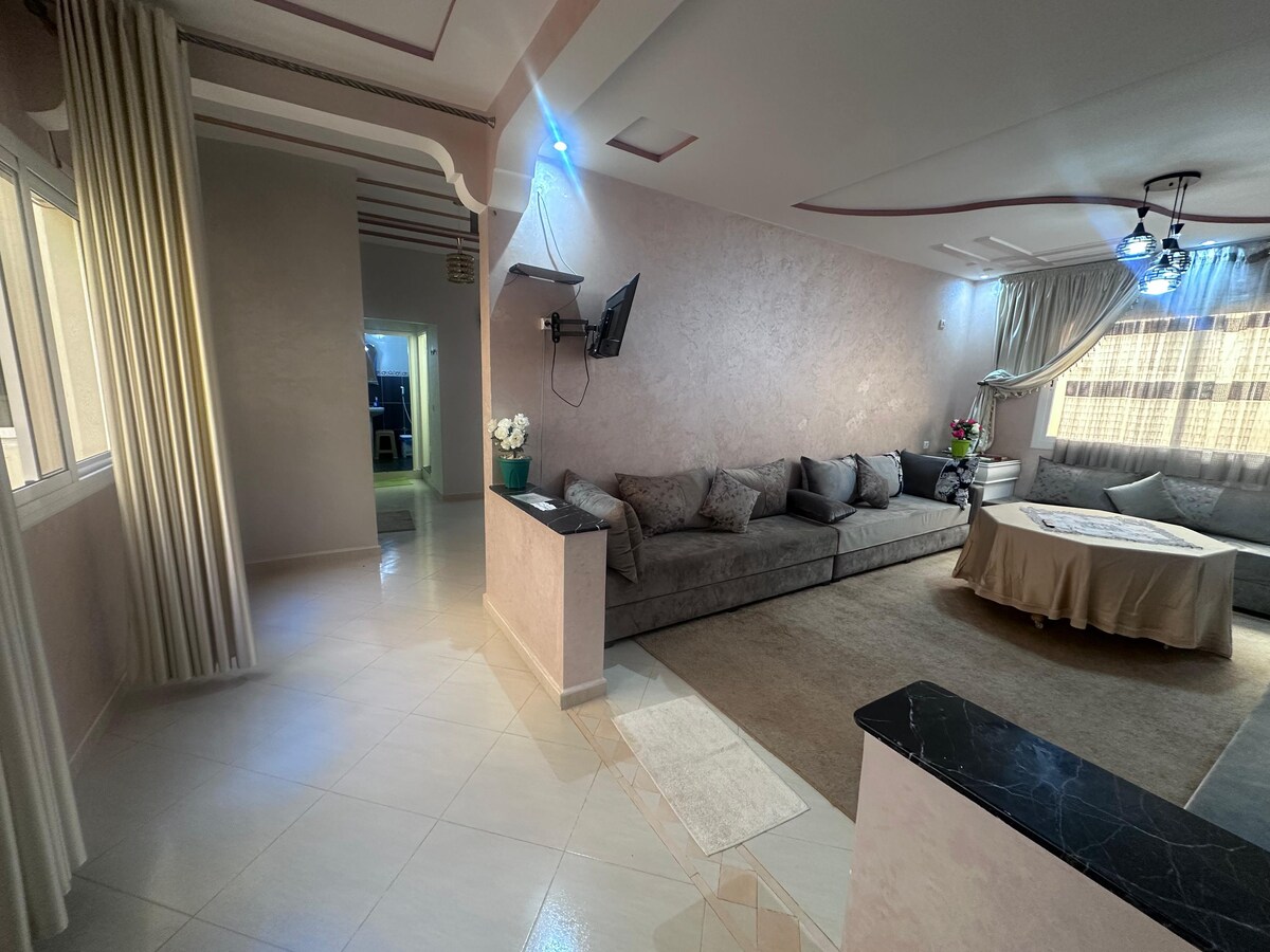 Amusez-vous avec toute la famille dans ce logement chic. notre appartement du luxe ,Situé au quartier el matar à côté de la ( café Dahab,Café Minsa rosita, 10/10. salle sport golden fitnesse. mosquée Mohamed 6...)