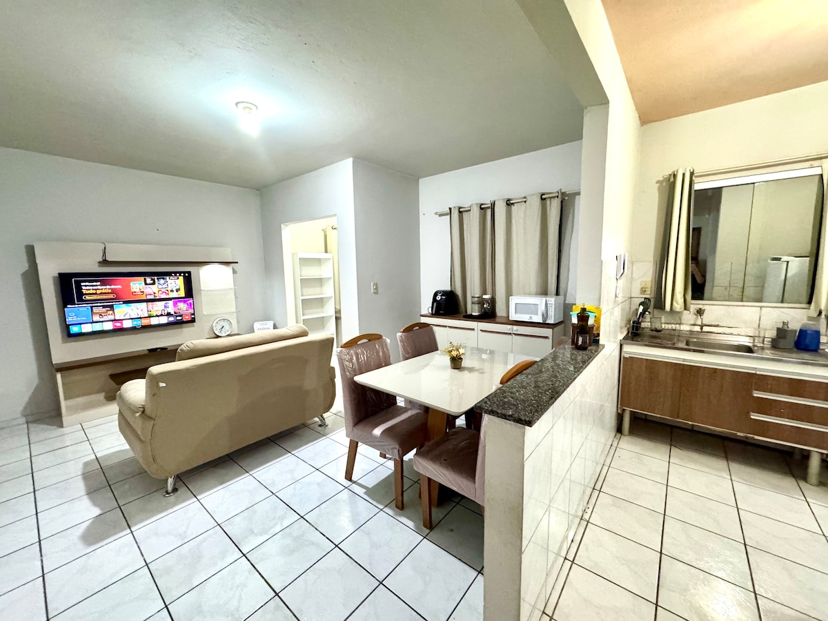 Bienvenidos a su moderno estudio en el corazón de Petrolina: un espacio acogedor que combina comodidad y practicidad. Ideal para dos personas, cuenta con una cama matrimonial, aire acondicionado, TV, wifi de alta velocidad y una zona de trabajo. La cocina está totalmente equipada con vitrocerámica, nevera, microondas, freidora de aire y cafetera. Aceptamos mascotas y ofrecemos una estancia segura, funcional y con una excelente ubicación.