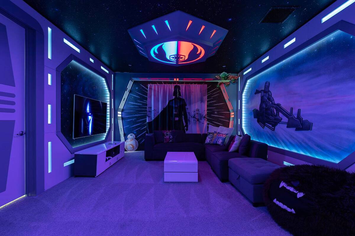 ¡Una casa de vacaciones que se toma en serio tu entretenimiento! Esa es nuestra villa de 8 dormitorios en Emerald Island Resort a 3 millas de Disney... ¿Listo para disfrutar de dormitorios temáticos, un cine privado premium con una pantalla de 155 pulgadas, proyector 4K, sonido envolvente 5.1 y una PS5 para jugar? Revive tus películas favoritas con una calidad impresionante, al igual que en los mejores cines. ¡La piscina privada y el spa harán que tus vacaciones sean inolvidables! Estamos listos para recibir familias y grupos, y ofrecer diversión, comodidad y lujo.