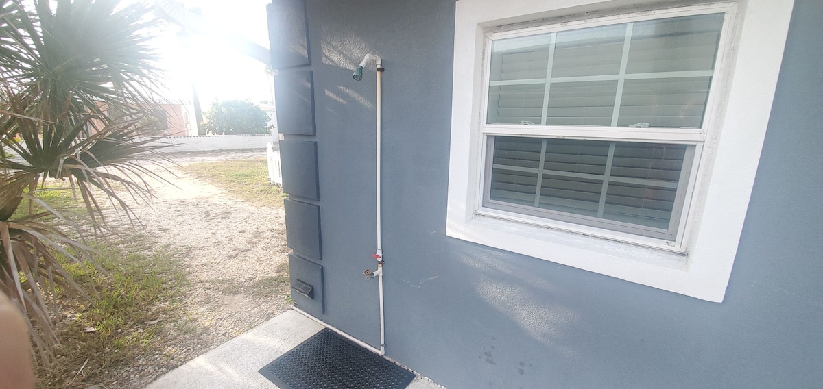 ¡Toma un camino privado desde la terraza, directamente al agua! Esta casa de playa de 2 dormitorios y 1 baño cuenta con una gran terraza junto a la playa para disfrutar del café y los amaneceres, ver a los niños jugar o simplemente levantar los pies para relajarse. Lávate tus preocupaciones en una ducha caribeña aislada al aire libre. Prepara una deliciosa comida en la cocina o haz una parrillada. Cuando haga demasiado calor... disfruta de una amplia vista al mar desde la comodidad del sofá con aire acondicionado. ¡Disfruta del aire libre después de que se ponga el sol en la hoguera!