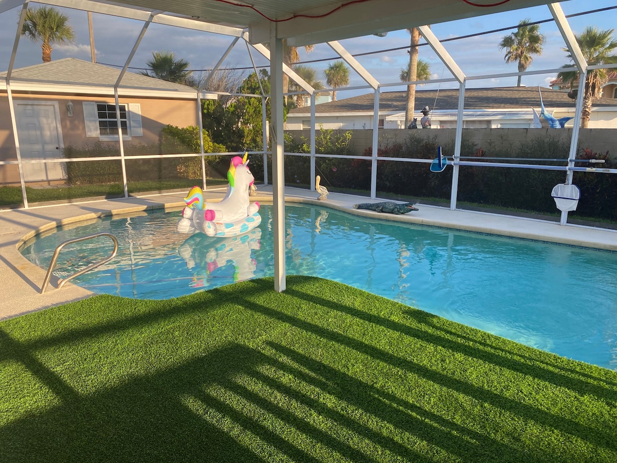 ¡A 2 minutos a pie de la playa! 🌊⛵ Alojamiento entero de 2 dormitorios y 1,5 baños para hasta 6 personas (2 adultos/4 niños) o 4 adultos. Wifi de alta velocidad, check-in automático, estacionamiento gratuito, 4 sillones reclinables, 2 televisores inteligentes, 3 camas de espuma viscoelástica, 1 baño completo, combo de lavandería/medio baño, cocina completa, cochera, patio, patio trasero, parrilla, ducha al aire libre. A 7 minutos a pie del río con muelle de pesca, kayak, atardeceres. 🌅 A 3 minutos en auto de Publix, tiendas, restaurantes, parques. A 7 millas de Daytona. ¡Disfrutá de unas vacaciones de sol☀️, brisa marina y relajación!