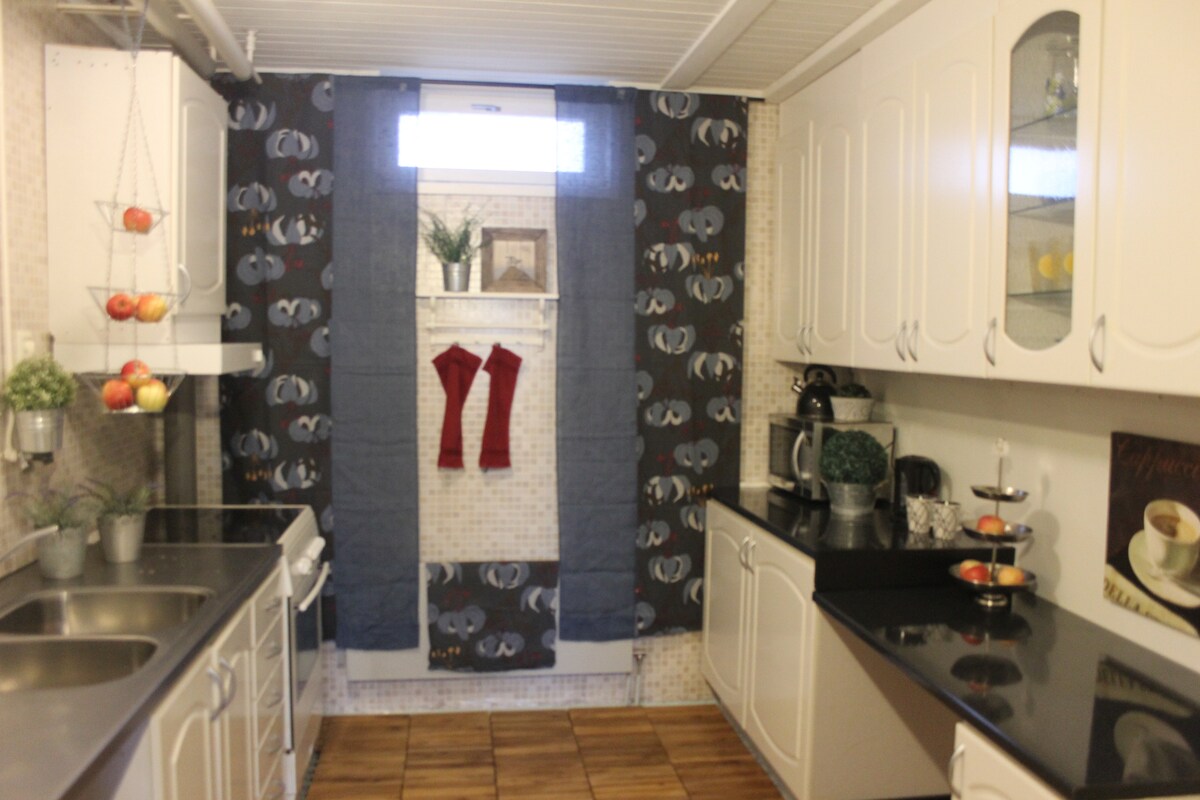 Casa de invitados 45 metros cuadrados, a 2 km del centro de Örnsköldsvik. Una habitación con dos camas individuales, cocina, comedor, zona de TV con sofá cama (120 cm) y baño con ducha y lavadora. Cama extra y cuna están disponibles. Avísame si necesitas ropa de cama. Equipado con nevera/congelador, microondas, cocina, horno, cafetera, TV, etc. WiFi y aparcamiento disponibles. Calentador de motor por una tarifa. No se admiten animales ni se fuma. Nos esforzamos por lograr una alta limpieza, por lo que te pedimos que dejes la cabaña en las mismas condiciones en las que llegaste. De lo contrario, se cobrará la tarifa. ¡Bienvenido!