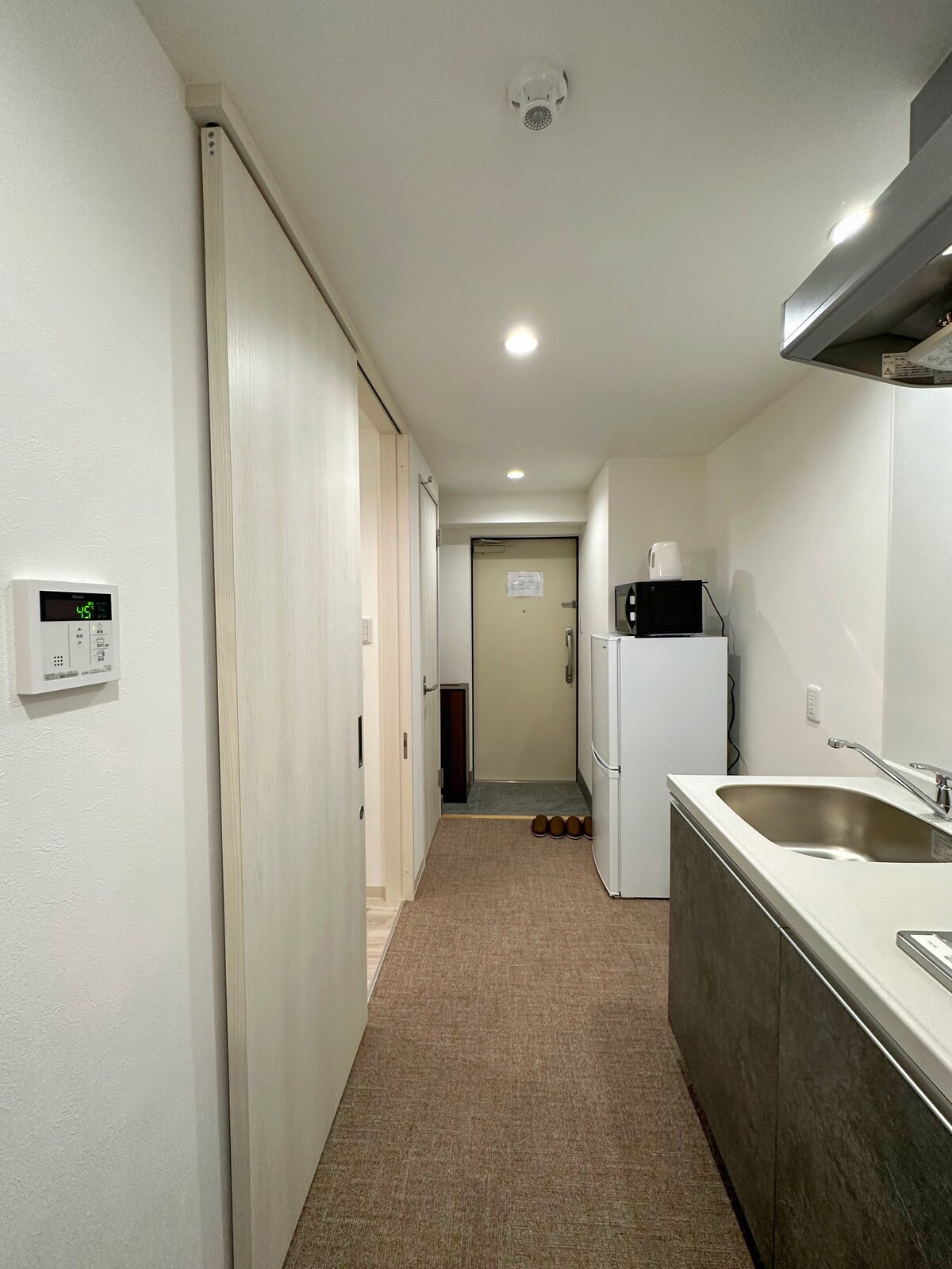 Habitación entera para amigos y familiares [Puntos recomendados para la propiedad] ① Hasta 4 personas pueden quedarse ② Departamento recién construido espacioso 30 ㎡ ③ Estacionamiento disponible en el lugar * Se requieren reservas para vehículos limitados . USJ (Universal Studios Japan) a 24 minutos de la estación de Shin-Imamiya. ⑤ Gimnasio en el hotel ⑥ Almacenamiento de equipaje gratuito disponible (ubicación específica ⑦ Minimercado y supermercado abiertos las 24 horas ⑧ Inodoro compartido en el primer piso Sala de estar y dormitorio · 1 cama doble (de unos 140 cm de ancho x unos 200 cm de largo) • 1 Sofá cama (unos 140 cm de ancho x unos 200 cm de largo) Lavabo Baño Bañera y regadera Calefacción y aire acondicionado También hay wifi disponible Televisor plano Permitido fumar en el balcón ▼Bien equipado “Instalaciones de cocina sin estrés” Estufas de gas de 2 quemadores - Aire acondicionado. Congelador - Pava. Tazas de té - Horno de microondas. Utensilios de cocina * No hay condimentos. Platos - Armario. “Bien equipado con higiene” · Secadora Plancha Baño - Toallas de mano x toallas de baño x cantidad de personas Lavadora privada en la habitación Varillas de secado de materiales · Gimnasio Inodoros compartidos
