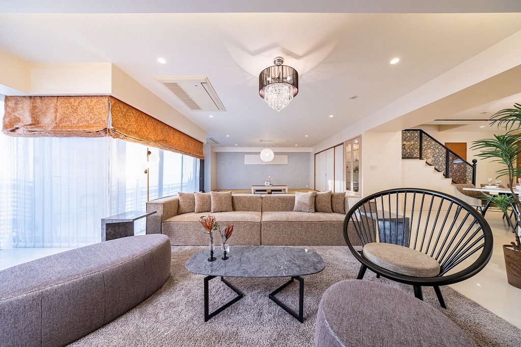Habitación dúplex de 2 plantas y 400 m² con capacidad para un máximo de 24 personas. Hay una habitación de estilo tatami japonés en la sala de estar. La instalación se encuentra a solo 4 minutos a pie de la estación de metro de Osaka Shitennoji-mae Yuhigaoka, a 8 minutos de la estación de Namba y a 60 minutos del aeropuerto de Kansai en metro. ◆ Características - Wifi de alta velocidad. - Gimnasio privado - Cocina de lujo. - Electrodomésticos de cumplimiento (Dyson, Refa). - Total de 6 dormitorios, 2 baños y 2 duchas. (1 dormitorio es una habitación principal con bañera, inodoro y cocina)
