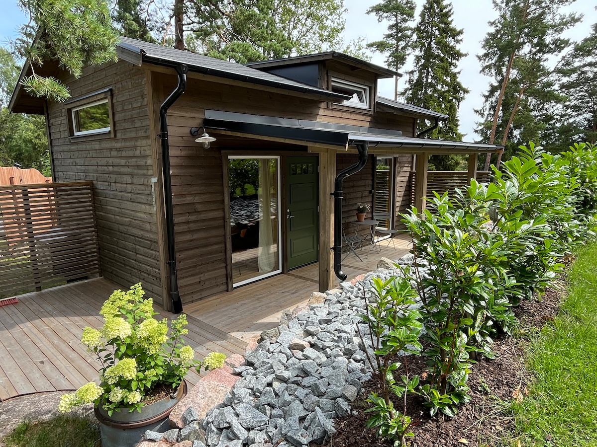 Te damos la bienvenida a nuestro pequeño paraíso, una encantadora y bien diseñada casa de huéspedes en la hermosa Resarö, a solo 35 minutos del centro de Estocolmo. Aquí, te vas a quedar en el corazón del archipiélago de Vaxholm, rodeado de naturaleza, mar, bosques y tranquilidad, pero a un paso de un supermercado, lugares para nadar y un autobús a la ciudad. Perfecto para una escapada romántica, un retiro creativo o simplemente un descanso tranquilo de la vida cotidiana. Agregá una habitación adicional en el jardín, 750 SEK/noche. Reservá a través del chat.