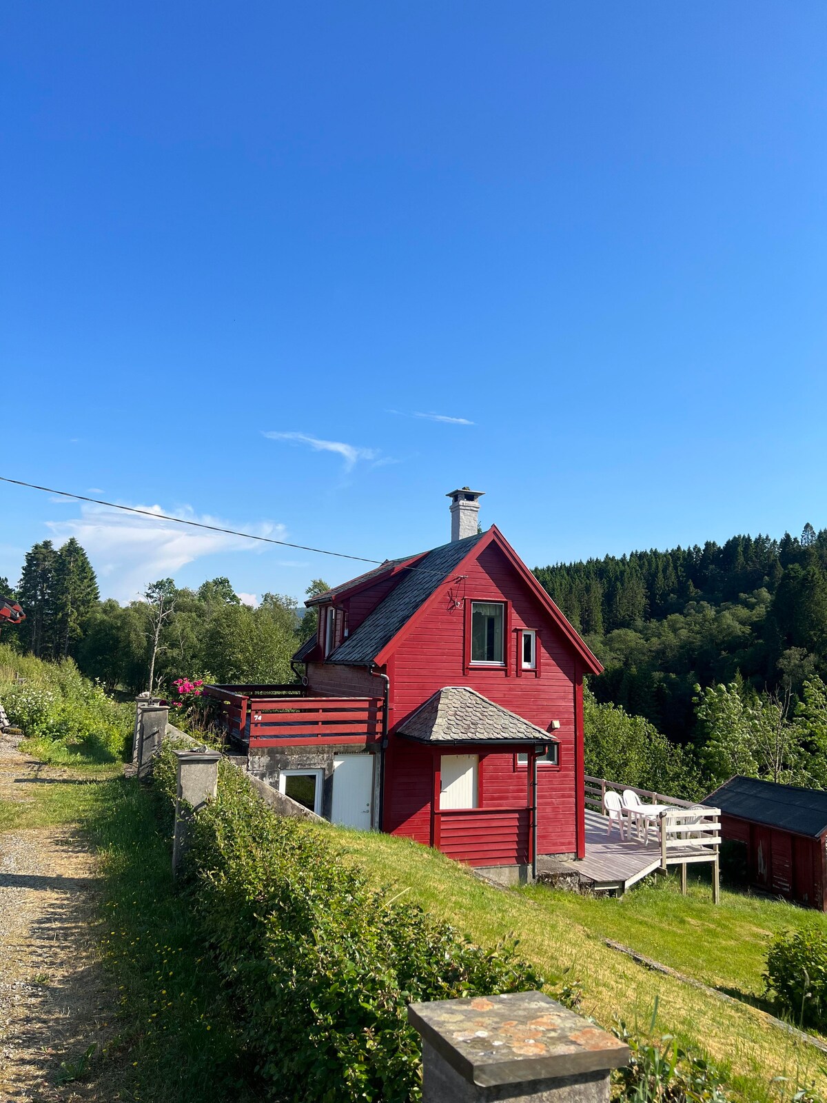 Welcome to the historic Bergen house, dating back to around 1780, located in the charming Sandviken area just a stone's throw from the bustling city center among local residents. You'll have the entire house to yourself, complete with a cozy outdoor terrace. The property is secluded from street noise, tucked away in a small alley. Its convenient location offers easy access to supermarkets, a bus stop, hiking trails, and city bike parking. Additionally, you can find paid street parking nearby.