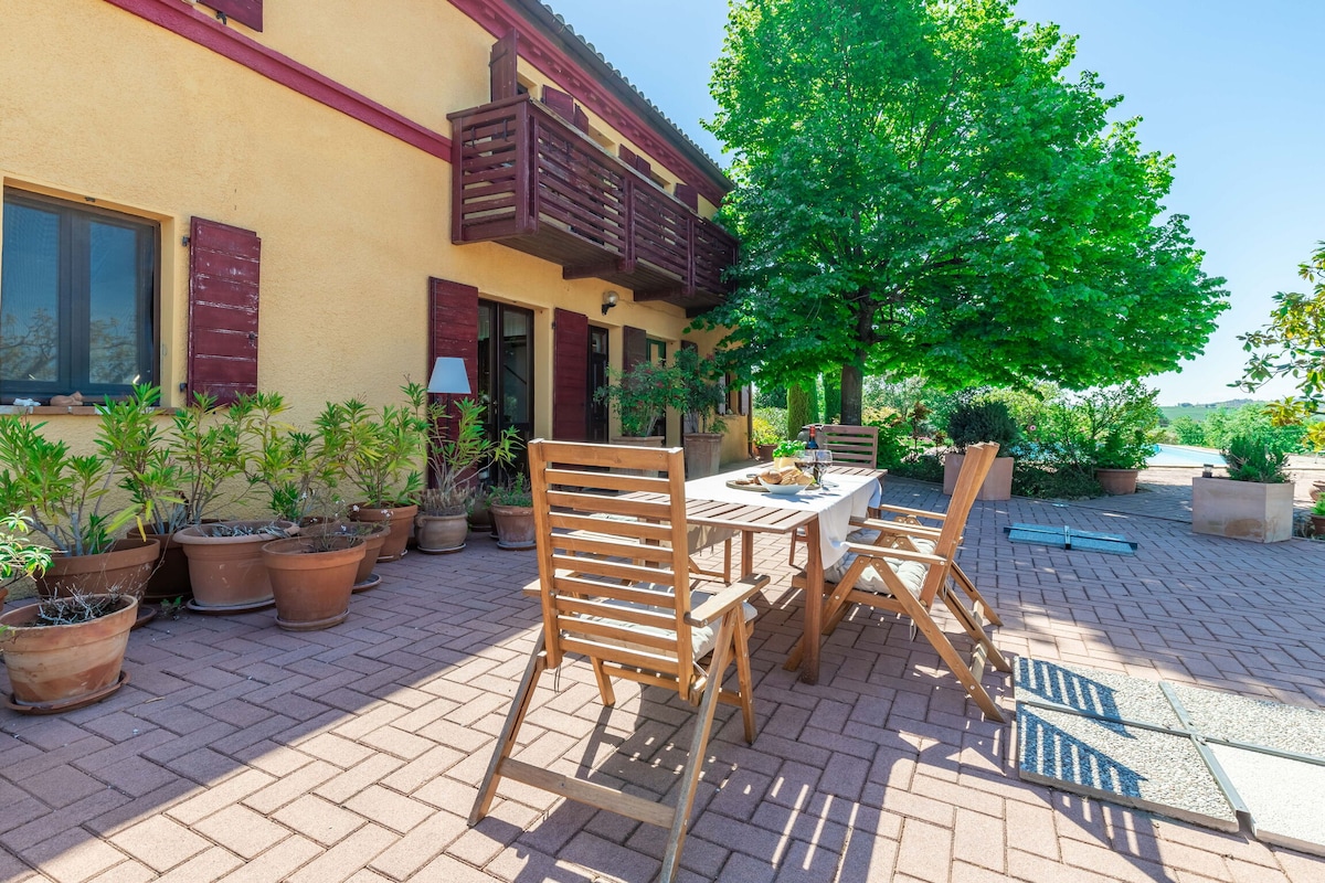 Gran villa histórica privada con 4 habitaciones y 6 baños. Los amplios espacios interiores incluyen una cocina totalmente equipada, un salón acogedor y un comedor luminoso, perfectos para relajarse y compartir momentos. La chimenea de pellet ofrece un ambiente cálido y envolvente, complementada con aire acondicionado para máximo confort. La villa está inmersa en la tranquilidad de la naturaleza de Las Marcas, rodeada de plantas y silencios revitalizantes.