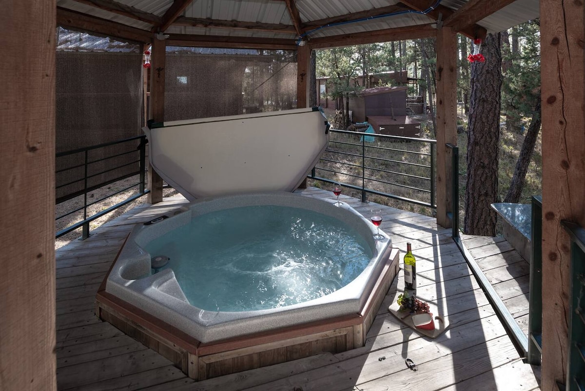 ¡Te damos la bienvenida a Shangri-La! Un entorno único, privado y mágico justo en medio de Cloudcroft. Casi medio acre vallado donde puedes pasear por los terrenos, disfrutar del pozo de fuego, leer en la acogedora oficina separada o asar a la parrilla. A poca distancia a pie del Lodge y del campo de golf, o del paseo marítimo del pueblo para ir de compras. ¡Un montón de toques personales! Y si buscas hadas, pájaros u otras criaturas del bosque, ¡todas están cerca! Se proporcionan placa calefactora, nevera y microondas.