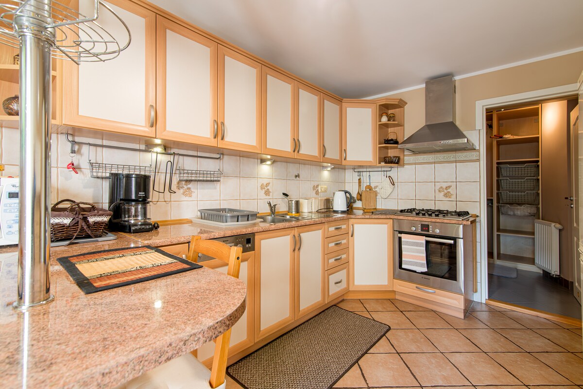 Nuestro encantador apartamento (con aire acondicionado) está situado en una zona tranquila de casas unifamiliares, a poca distancia del casco antiguo de Gdansk (30 minutos a pie). El ático de nueva construcción que ponemos a su disposición ha sido diseñado funcionalmente y está totalmente equipado. Sus interiores están decorados con gráficos de jóvenes artistas, antiguos grabados de la ciudad y flores. 9,6 km - 25 minutos en coche - Playa Paradas de tranvía y autobús: a 8-10 minutos a pie del apartamento ¡Le esperamos! :)