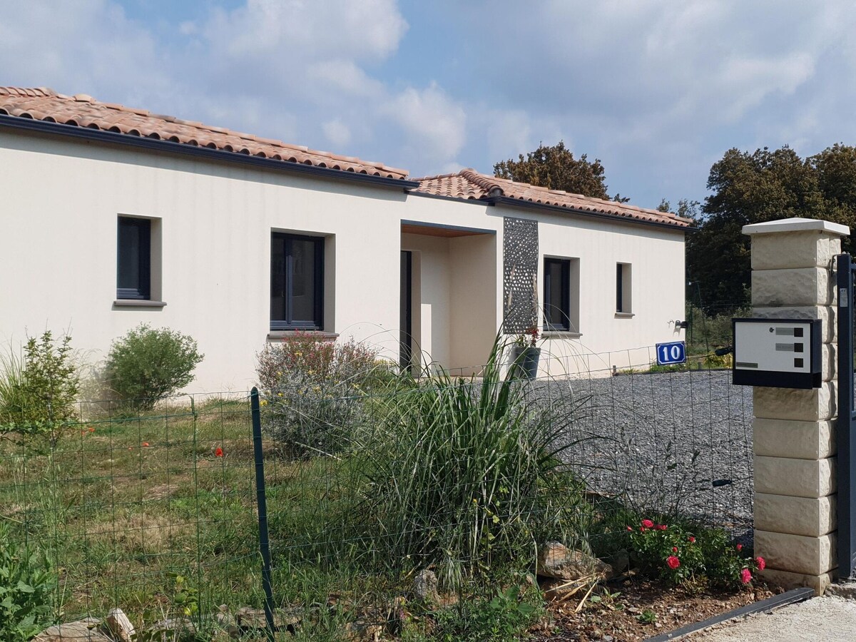 Encantadora casa nueva independiente con piscina,terraza,barbacoa ,en terreno de 2000m2. Vallado. a 25 km de Beziers ,Carcasona y Narbona. lago des jouarres en homps a 6 km, canal du midi a 10 min, playa a 30 min. Estamos en un pequeño pueblo de 500 habitantes muy tranquilo con tienda de comestibles y panadería. Cuna y posibilidad de una cama de 80 x 190 Se admiten todos los animales No se permiten grupos de jóvenes