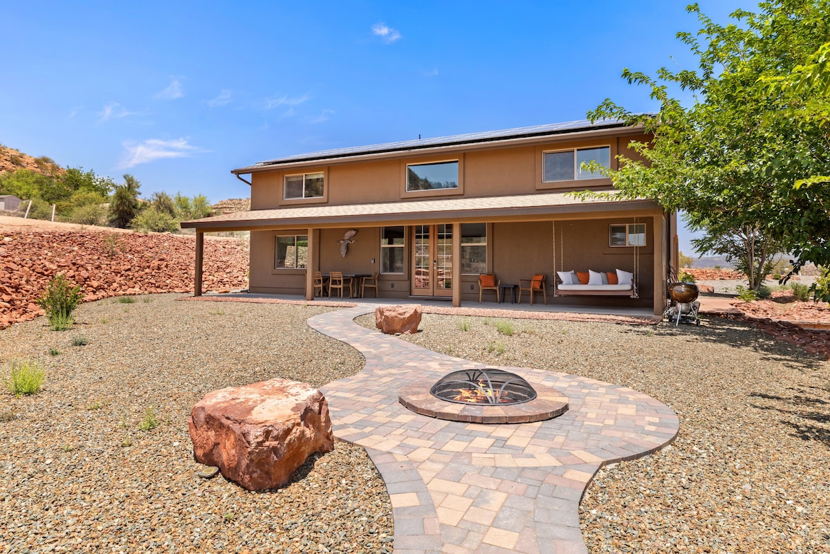 Hay algo salvaje en este lugar y, sin embargo, es muy sereno. Aquí es donde Zane Gray y Tony Hillerman pudieron haber escrito uno de sus libros en el exclusivo suroeste. Vincent Van Gough podría haber elegido pintar la noche estrellada y los acantilados en 7 tonos diferentes aquí si hubiera vivido en Estados Unidos. Amaneceres y puestas de sol desde todos los lugares: ¡el balcón, la sala de estar, el dormitorio y el baño te dejarán sin aliento! (Esto es solo arriba con tu propio balcón. Casita es otra unidad de abajo para otros).