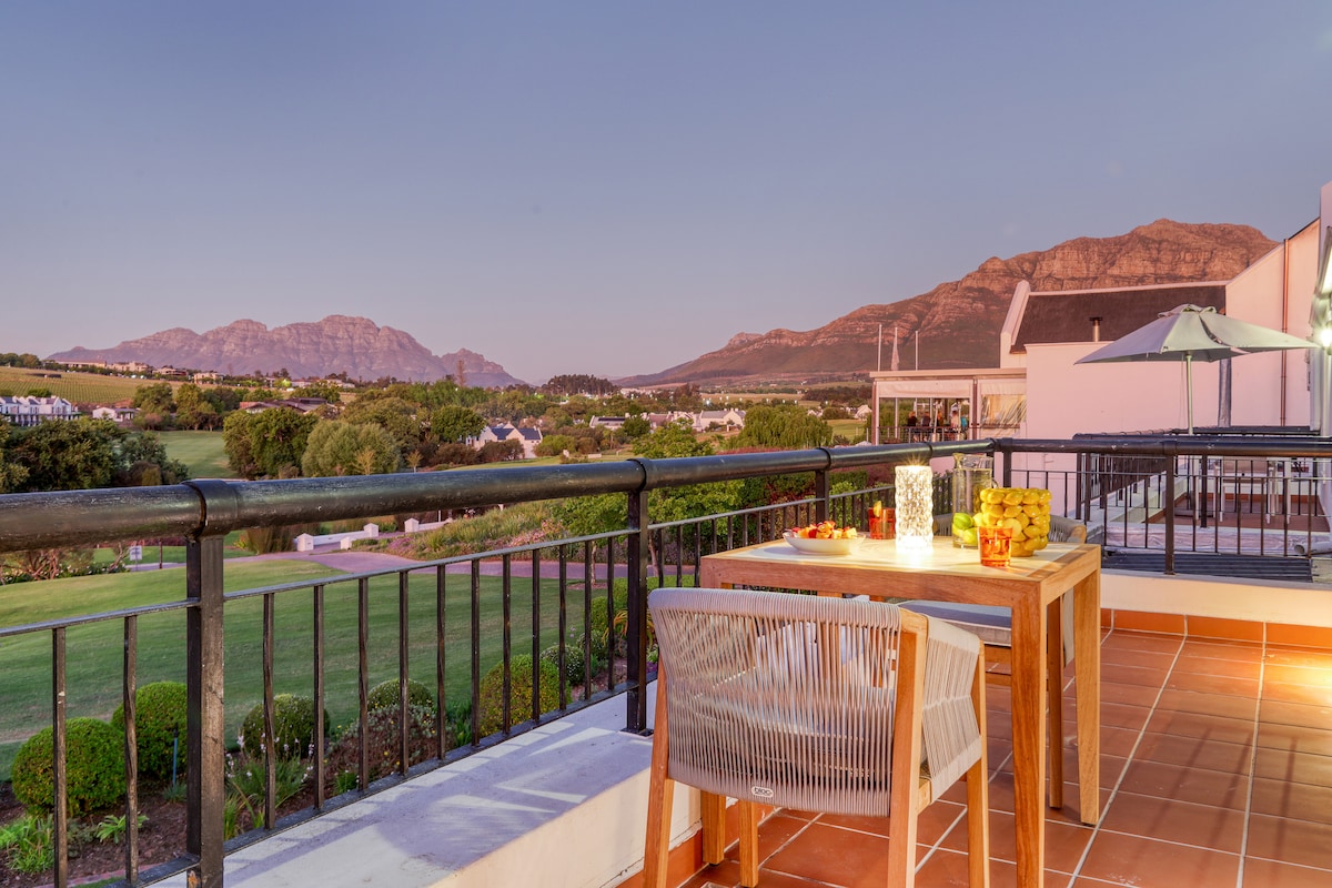 Beautiful 5-star hotel stay with 180-degree views directly on the exclusive De Zalze Winelands Golfing green with the Stellenbosch Mountains seen. A true delight of utmost decadence, and serenity to the eyes and every golfer's dream accommodation. De Zalze Winelands Golf Estate provides multiple restaurants, a working wine farm with wine tasting and restaurant, a Spa, a lake for catch-and-release fishing and canoeing, and naturally a well-loved Championship 18-hole Golf Course.