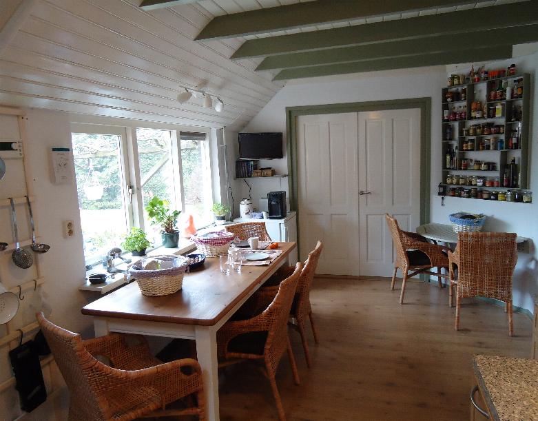 Nuestra acogedora y característica casa trasera con una superficie de nada menos que 120 m2 forma parte de una granja con techo de paja de 1862. Tiene su propia entrada y mucha privacidad. Hay un hermoso salón grande con vigas de roble y altillo. Desde aquí tienes una hermosa vista panorámica de los prados traseros.