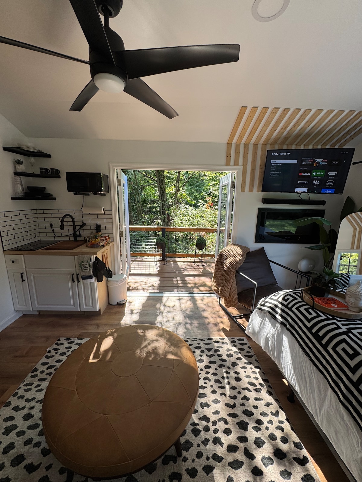 Fox Cottage is a thoughtfully designed eclectic modern retreat nestled beside our beautifully preserved 115-year-old Victorian home. Tucked along a peaceful, wooded path, this private cottage offers the perfect balance of charm, comfort, and convenience — ideal for couples, professionals, concertgoers, and travelers bringing their furry companions.