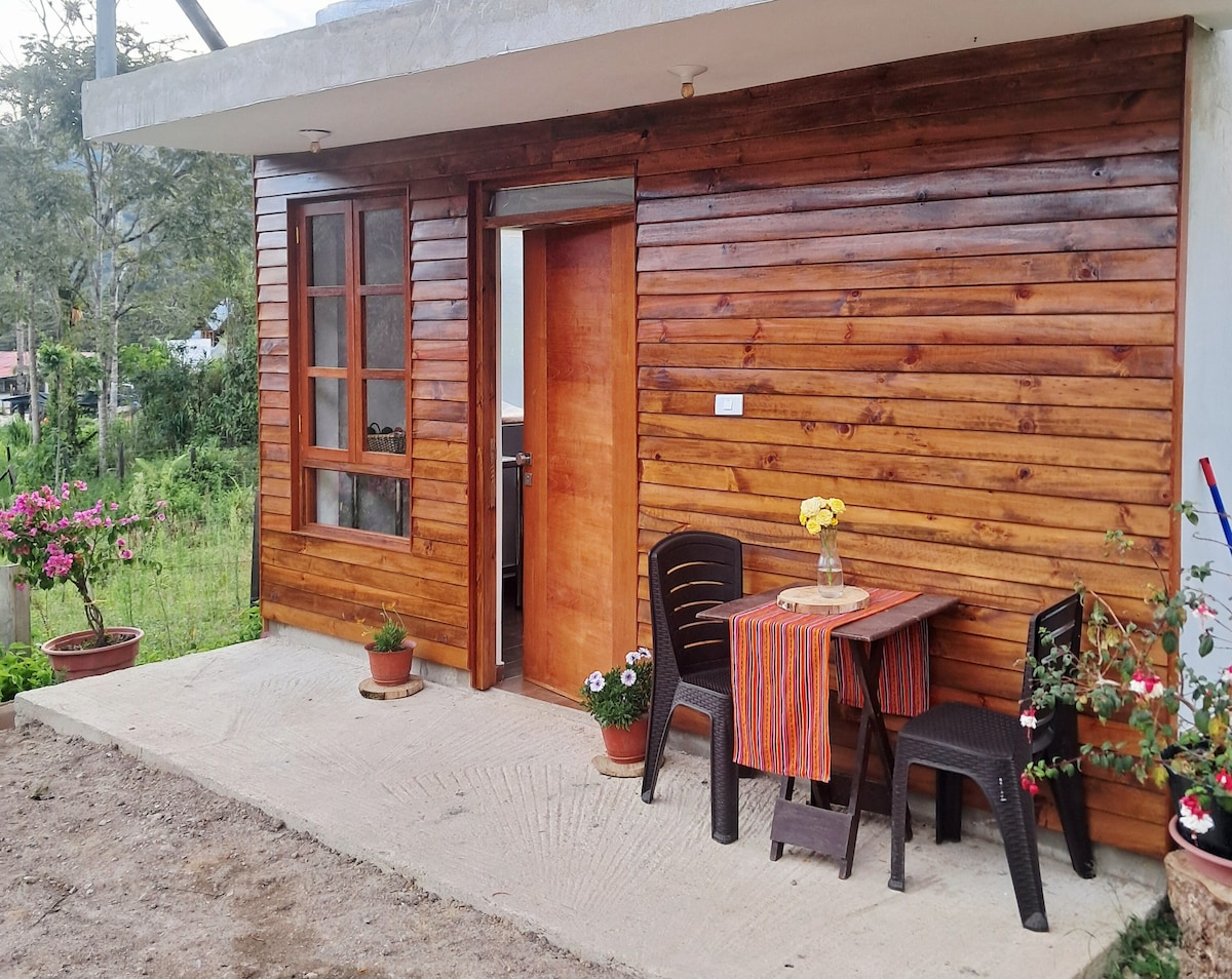 Disfruta de una experiencia con estilo en este alojamiento céntrico y a la vez en el bosque conectando con la paz de la naturaleza y a minutos de la plaza central. Vas ahorrar tiempo y combustible. • Baño con agua caliente • 2 habitaciones con 3 camas • 2 camas de 2 plazas y 1 cama de plaza y media • Terraza con vista al bosque • wifi • Sala comedor • cocina equipada • 1 televisor también vas apreciar la variar de aves, ardillas y monitos que nos visitan de la naturaleza.