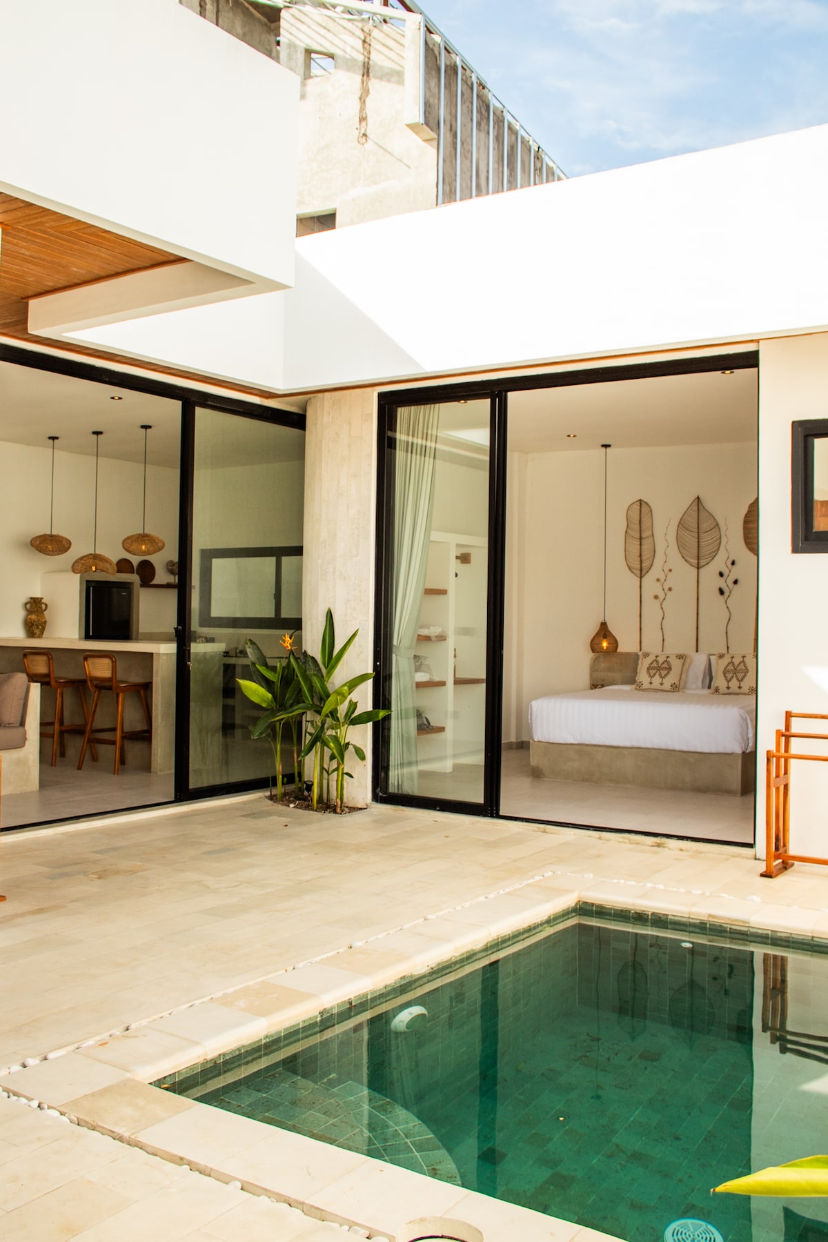 Escapate a tu santuario tropical privado, diseñado pensando en el romance y la relajación. Ubicada en una zona tranquila de Bali, esta elegante villa de un dormitorio combina curvas de inspiración mediterránea con una elegancia moderna, perfecta para parejas y recién casados que buscan una escapada de ensueño. Ya sea que te despiertes con la luz suave del sol a través de las cortinas, cenes al aire libre bajo las estrellas o disfrutes de un baño relajante en tu ducha de diseño, cada detalle está pensado para ofrecer comodidad, estilo y conexión.