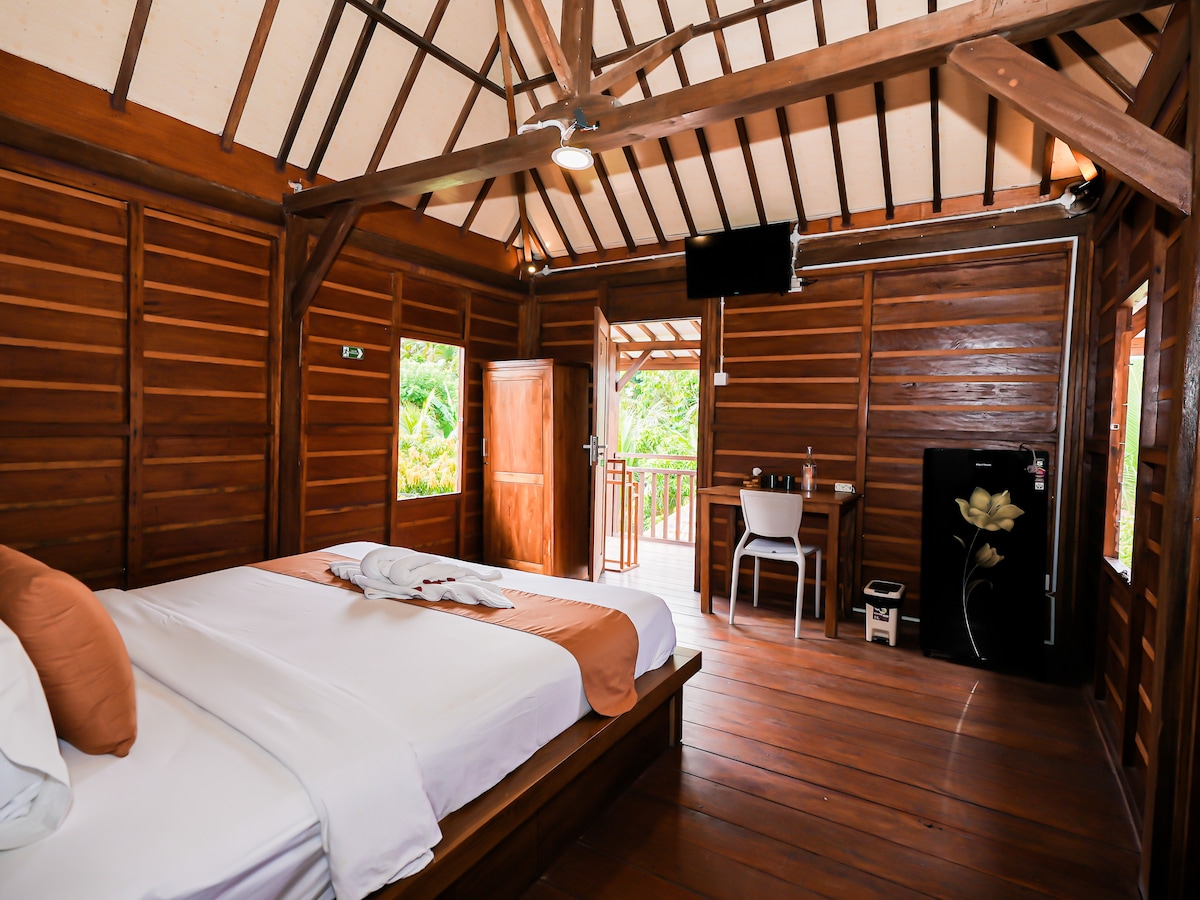 Escápate a nuestra serena propiedad que ofrece casas de campo privadas independientes enclavadas en medio de exuberantes jardines con vistas al mar y una brisa fresca constante. La cabaña ofrece un refugio tranquilo, lo que garantiza privacidad y comodidad. Ubicado en la zona de Bukit de Bali, el aeropuerto está a 15 kilómetros. El apartamento está muy cerca de lugares de surf de clase mundial como Bingin Beach, Padang Padang y Uluwatu. Cerca encontrarás restaurantes y playas espectaculares.