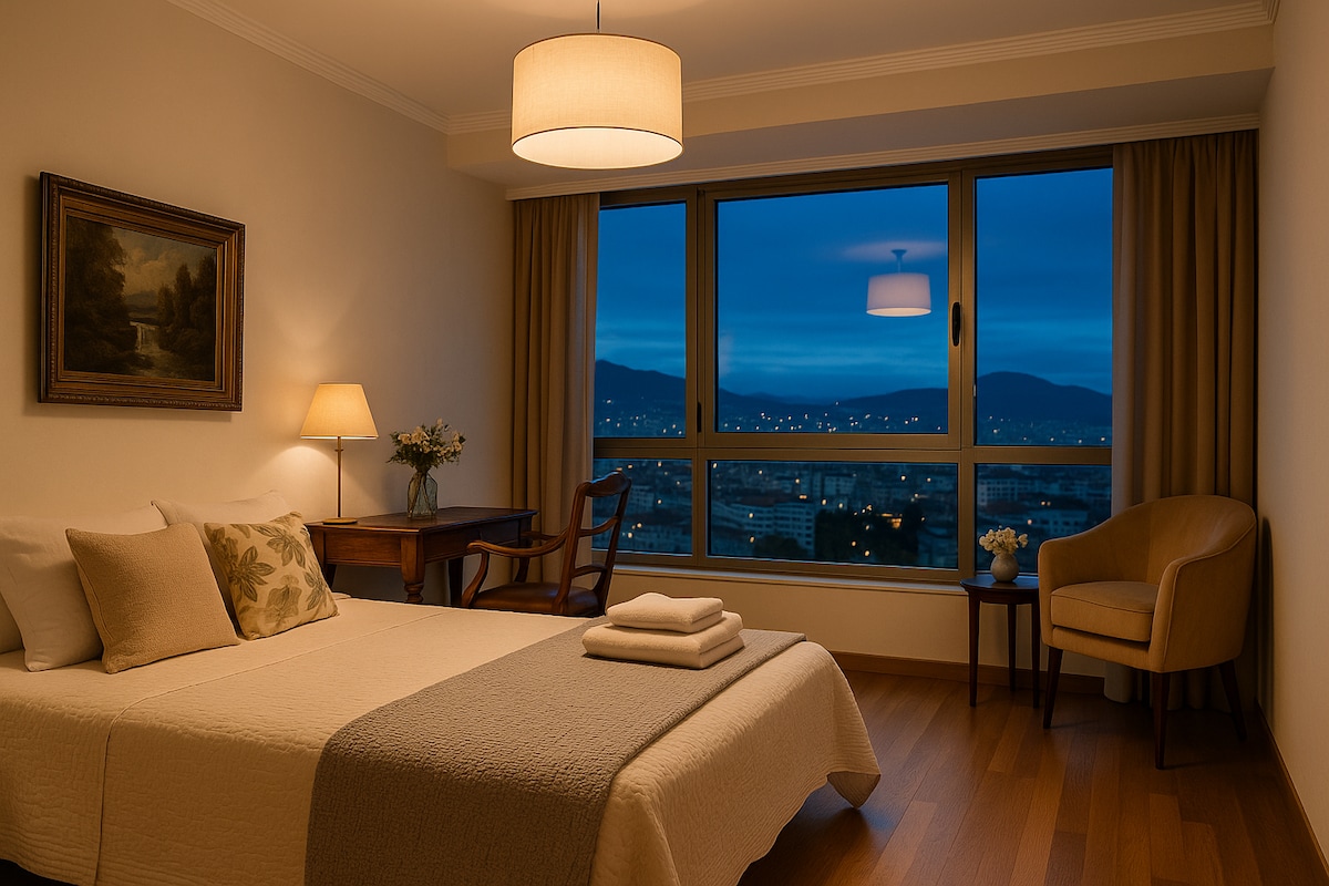 Una experiencia de lujo en este céntrico y luminoso apartamento equipado como una suite de hotel. Edificio histórico. El dormitorio, presidido por una confortable cama King size, Smart TV, balcón y un baño completo. El salón cuenta con una coqueta cocina americana, un comedor, Smart TV de gran formato, una cómoda mesa de trabajo junto al ventanal y un sofá- cama. Dos ventanales de tres metros de altura con balcones que se asoman a la “Puerta del Sol de Vigo”. Próximo al puerto- Islas-Cíes