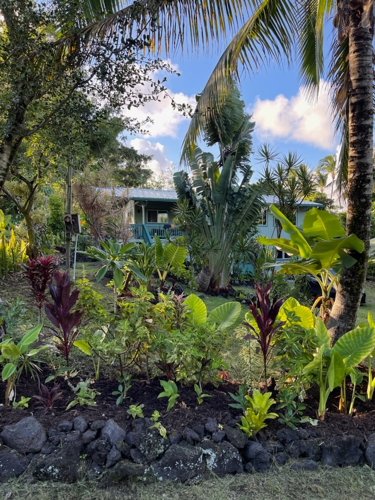 Licensed vacation rental on small banana farm 1 mi. from Kehena black sand beach, one of the least developed populated coasts in Hawaii. King bed, AC, full kitchen, screened lanai, outdoor shower & Jacuzzi bathtub/shower. Nearby viewing of the 2018 lava flow, swimming, snorkeling, hiking. Located in rural Kalapana Seaview neighborhood. Nearest store 10 mins, town with services is Pahoa, 20 mins away. Hilo, 45-60 minutes away. Volcano Park 1 hour. All of island accessible for day trips.