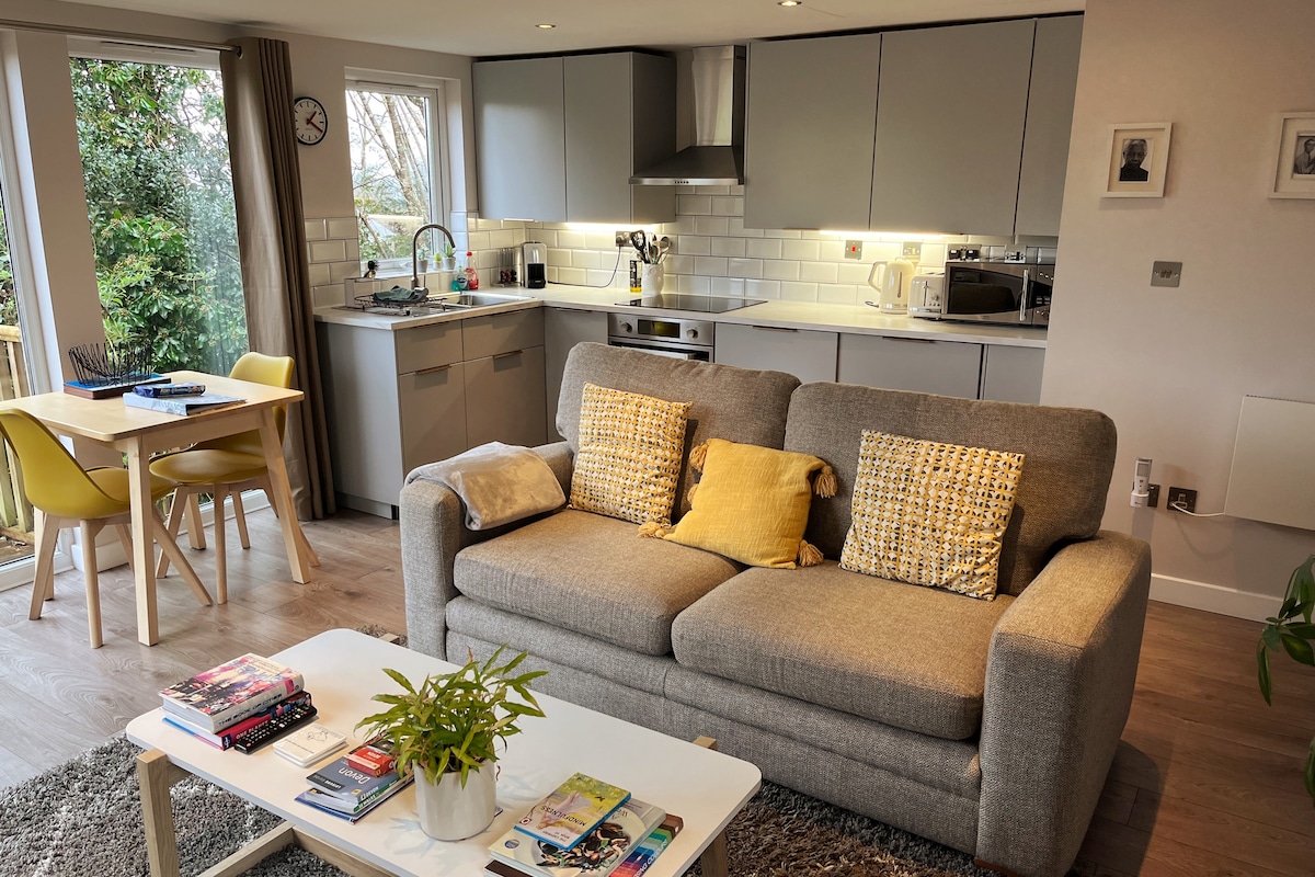 Contemporary, comfortable and homely 1-bedroom cottage, close to Exeter, Dartmoor and South Devon beaches. Wonderful views, king size bed, stylish bathroom, open plan kitchen, living and dining room and your own private deck to enjoy the views. Breakfast, Nespresso machine, Netflix & bathrobes are provided for your use during your stay. EV charging available. Run by Superhost for 8 years. If unavailable, please see The Burrow (our other listing) at the same location with over 100 5* reviews.