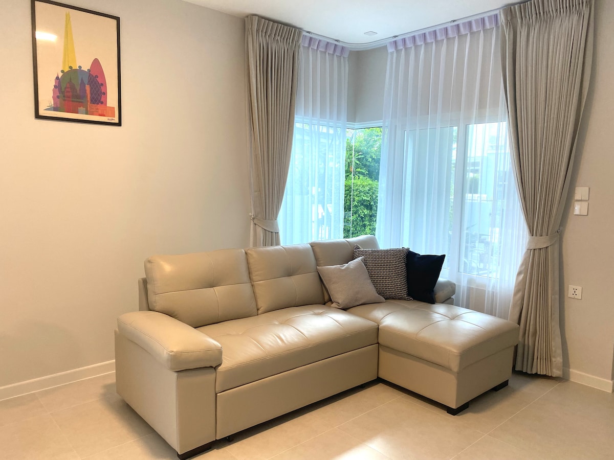 Villa jardín 3 dormitorios 3 pisos tamaño 690 metros cuadrados ♦️3 dormitorios con baño privado y bañera ♦️4 baños Cocina ♦️ grande totalmente equipada con una heladera grande ♦️Gimnasio ♦️ Lavarropas y secarropas de tamaño completo ♦️ Jardín con un pequeño pabellón ♦️ Heladera en cada piso ♦️ Filtro de agua potable Internet de♦️ alta velocidad/Parlante con Bluetooth Jacuzzi ♦️ grande al aire libre ♦️ Servicio de traslado desde/hacia casa-camino principal * Desayuno simple gratuito al estilo tailandés, reserva 3 noches o más y traslado al aeropuerto (check-out) para reservas de 5 noches o más