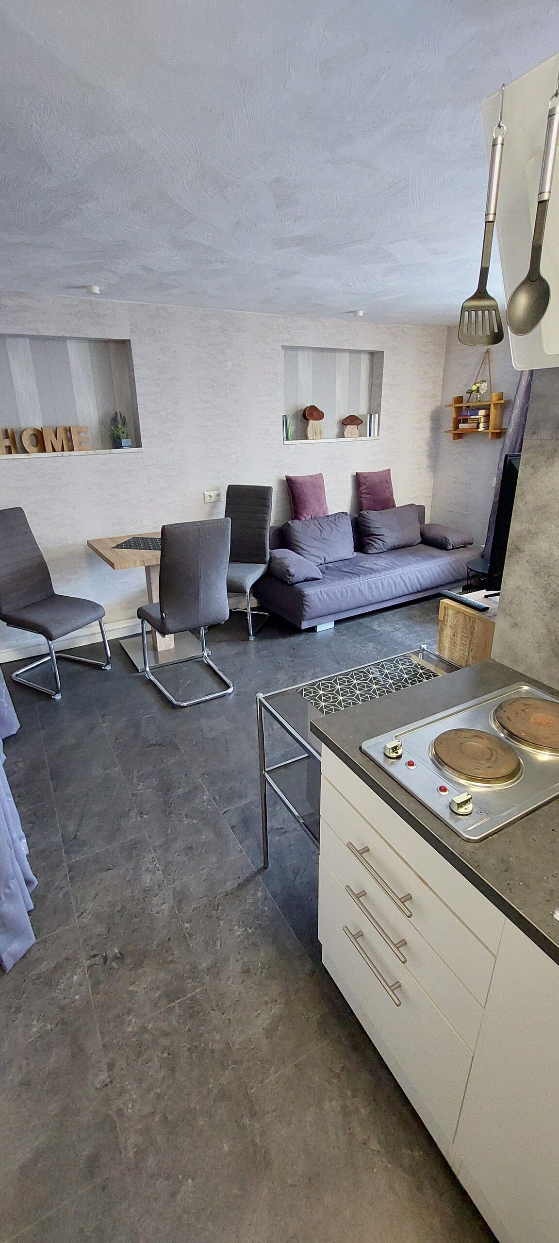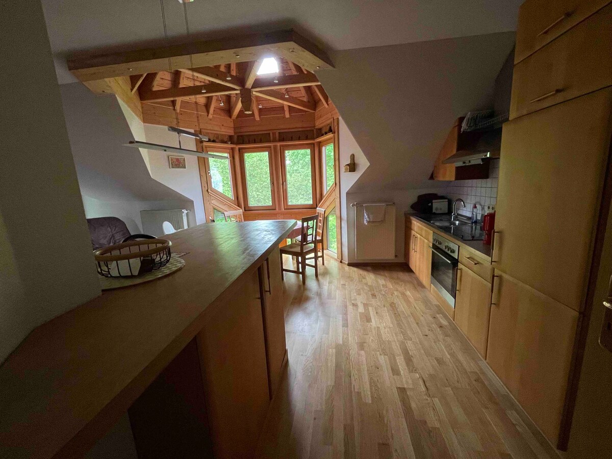 Homemade Apartment está lejos de ciudades ruidosas. No importa si viajas por negocios o simplemente te tomas unos días libres con tu familia, aquí encontrarás paz, tranquilidad y posiblemente te acerques mucho a la naturaleza. Construido en 2022, el apartamento de vacaciones tiene una cocina totalmente equipada, una sala de estar bellamente diseñada, un dormitorio con baño y una galería (altura máxima de la galería: 1,7 m). Nuestro jardín aún está en construcción, pero hay un acceso directo a campos y bosques.
