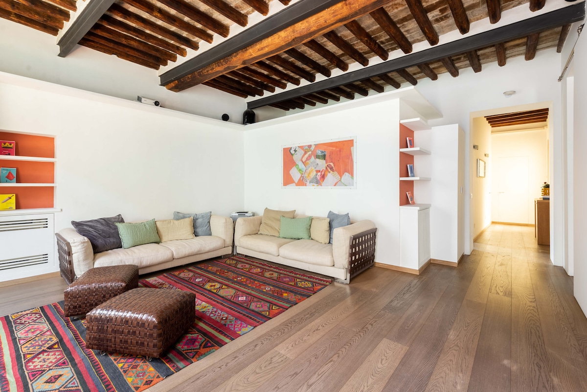 Amplio apartamento con un diseño moderno y refinado en el corazón del antiguo y característico gueto, el encantador barrio judío romano. Estarás inmerso en un ambiente acogedor y confortable, con muebles de primera calidad y el máximo confort. ¡Una estancia única e irrepetible en el corazón de Roma! En una posición estratégica y exclusiva, estarás envuelto en una zona de encanto único, cerca de los mejores sitios culturales e históricos, con restaurantes típicos, bares, clubes y tiendas.