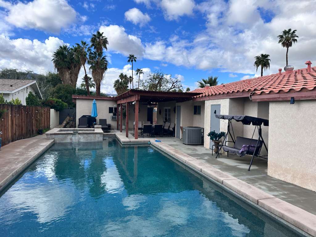 Look no further, HPH is the perfect place for your relaxing spring getaway. Get out of the snow and enjoy the warm desert weather. 🎾This home is a short drive or walk to the tennis tournament🏟️ ⚡️EV charger installed and free for guest use ⚡️ Pool heating available upon request. At the base of the Santa Rosa mountains HPH provides a relaxing space the entire family can enjoy. The expansive backyard features a large pool, fire pit, bocce court, putting green, TV and multiple lounging areas.
