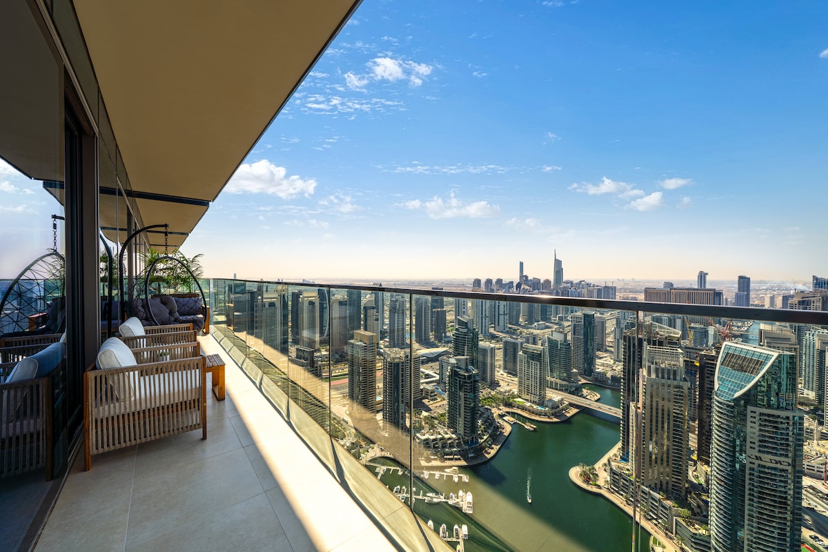 Indulge in elevated luxury at our freshly upgraded stunning two-story 3 bedroom gem, perched on the 79th and 80th floors. With expansive interiors and captivating sunset views, it’s the perfect retreat for unforgettable moments with your loved ones. Nestled in the vibrant heart of Dubai Marina, this exceptional residence places you steps away from the city’s finest attractions. For added ease, our digital concierge service is available throughout your stay, ready to assist whenever you need.