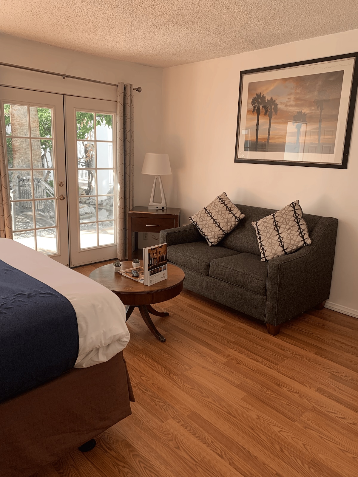 Disfruta de la belleza de Palm Springs en nuestra suite de un dormitorio, que cuenta con cocina completa y sala de estar, una cama tamaño king y un baño privado completo. La habitación bien equipada incluye muebles hechos a mano de artesanos mexicanos, TV en streaming, WiFi gratuito, una cafetera, un minibar en la habitación, una despensa surtida para comprar, molinos y decoración hechos a mano, y artículos de tocador seleccionados, como batas hechas a mano de Oaxaca.