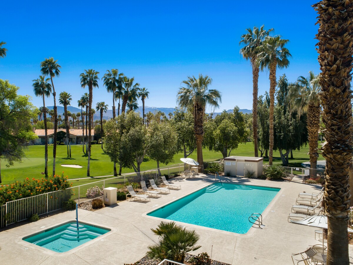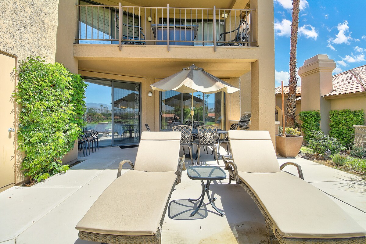 Relax and unwind at this peaceful and centrally-located fully stocked Condo located in the Palm Desert Resort Country Club; a 24 hour security gated community. Single level unit in the "Resorter, AKA." World class pickball and tennis courts. On the 10th fairway of the golf course! Amazing views of the sunset, mountains, golf course and clubhouse. 20 swimming pools and spas on property. Our guests have access to all amenities including Golf, Tennis, Pickleball, Clubhouse and restaurants.