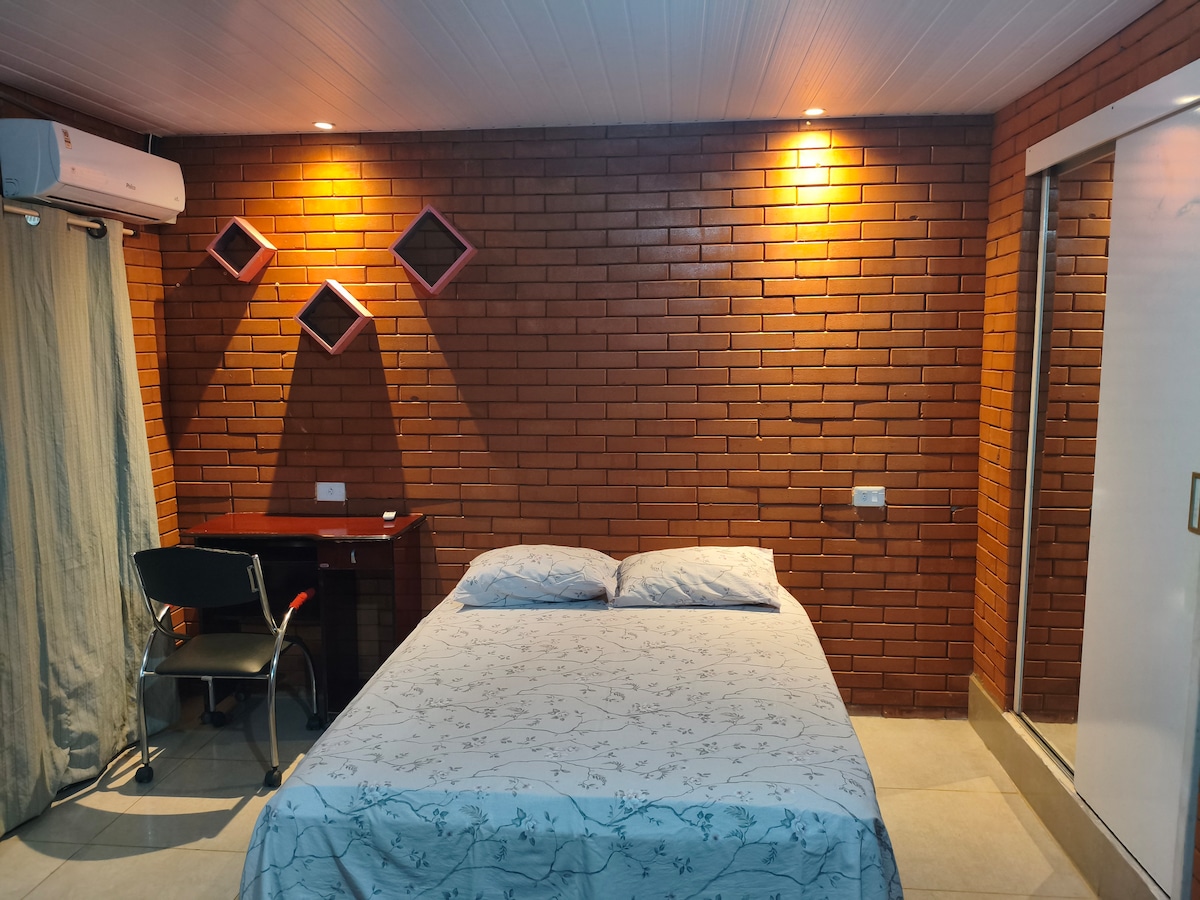 *Espacio privado. *Al lado del gimnasio blufit *Al lado de los principales hospitales *Wi-Fi gratuito. *Ambiente familiar. *Garaje con 4,40 centímetros. *Cocina bien equipada. *Aceptamos a tu mascota." informado en la reserva, *No se permiten visitas. *Espacio individual. *Aire acondicionado. *Plancha *selfie check-in