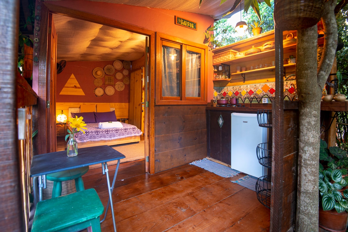 Encantador chalet de madera en Vale do Capão a 7 minutos a pie del centro, tiene capacidad para dos personas, BAÑO PRIVADO EN EL EXTERIOR. NO ES UNA POSADA, ES UNA CASA DE ALQUILER La cabaña está equipada con cocina, 2 mesas, una de ellas retráctil, ventilador, wifi, red, el espacio tiene aislamiento térmico evitando cambios extremos de temperatura, rodeado de un jardín muy bonito y cuidado por nosotros. No incluye desayuno. SOMOS GUÍAS TURÍSTICOS - VALE DO PATI/ CAPÃO. Bienvenidos a todos 🌿😊