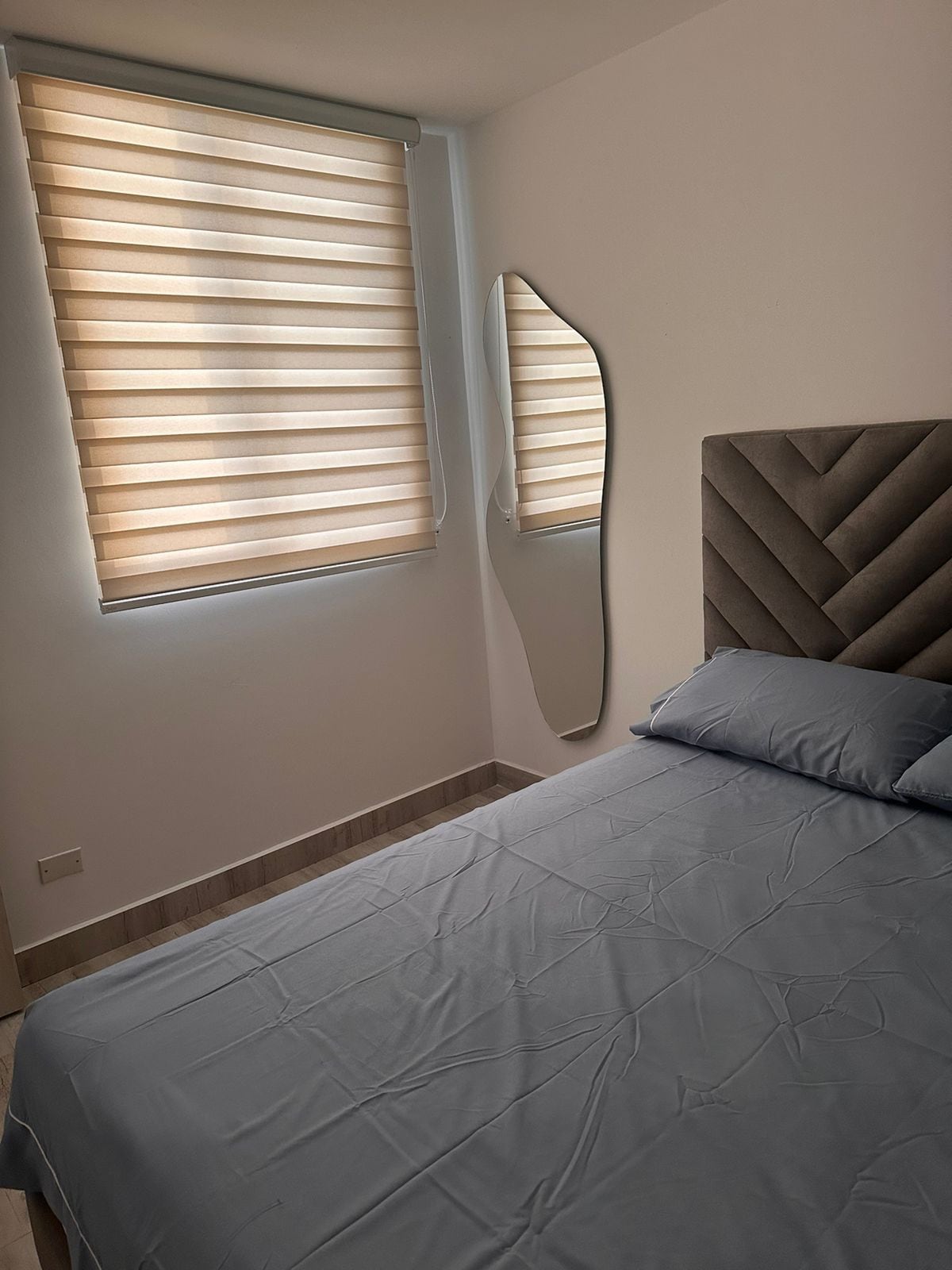 Hola buen dia, nuestro apto es 2/2 que será tu casa fuera de tu casa. RENTAS DE CORTO Y LARGO TIEMPO con A/C. A 15 Mins del Aeropuerto y al lado de UNICENTRO mall con cine y muchos lugares para comer y hacer tus compras. Cali es tu destino está a tan solo 30 mins. Tendrás todo lo que necesitas para pasar unas vacaciones adecuadas, la unidad tiene seguridad las 24/7. El apto queda en un 4to PISO y no hay elevador sorry. NO se permite FUMAR dentro del apto un paqueo disponible.