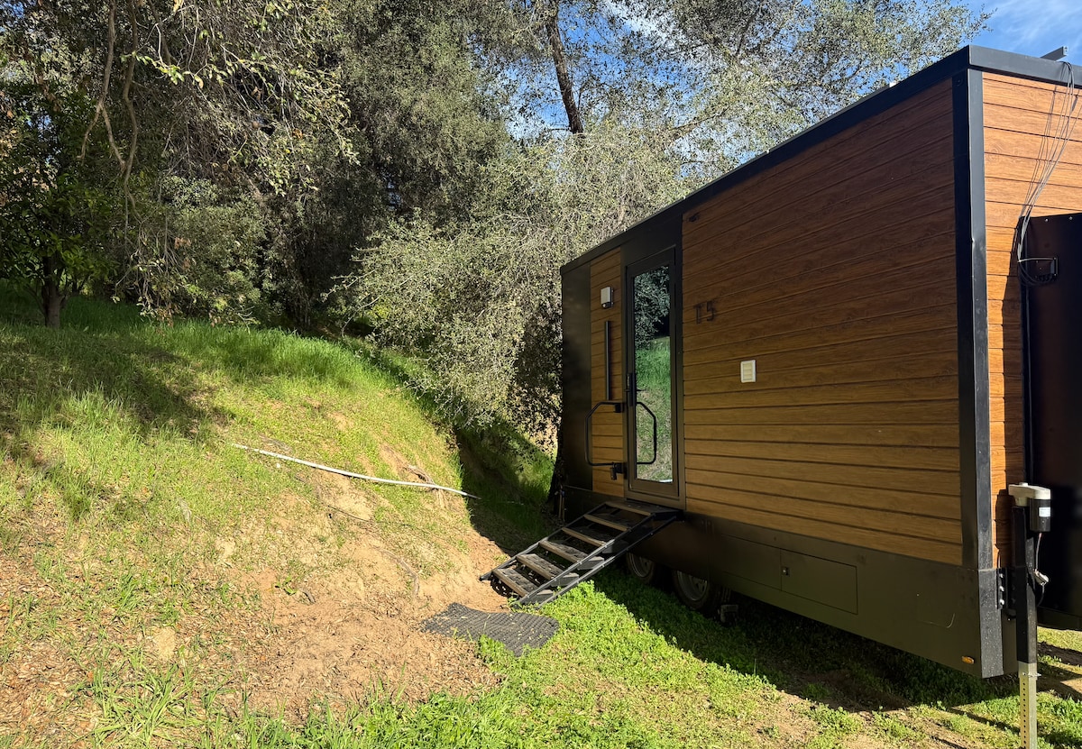 The Overlook se encuentra enclavado sobre un valle virgen que se extiende hacia las colinas y el horizonte. Aquí, tu minicasa te espera. Abre las puertas dobles y encuentra todo lo que necesitas. Una cama en voladizo sobre el sofá, mostrador de cocina de 10', baño con ducha de efecto lluvia totalmente revestido e inodoro de compostaje, rincón de comedor/trabajo y zona de barbacoa/asientos al aire libre. Ven, aléjate y vuelve a conectar. Cocina, lee, escribe, descansa. Piensa. Ven a descubrir una forma ligeramente diferente de hacer las cosas. Bienvenido a The Overlook.