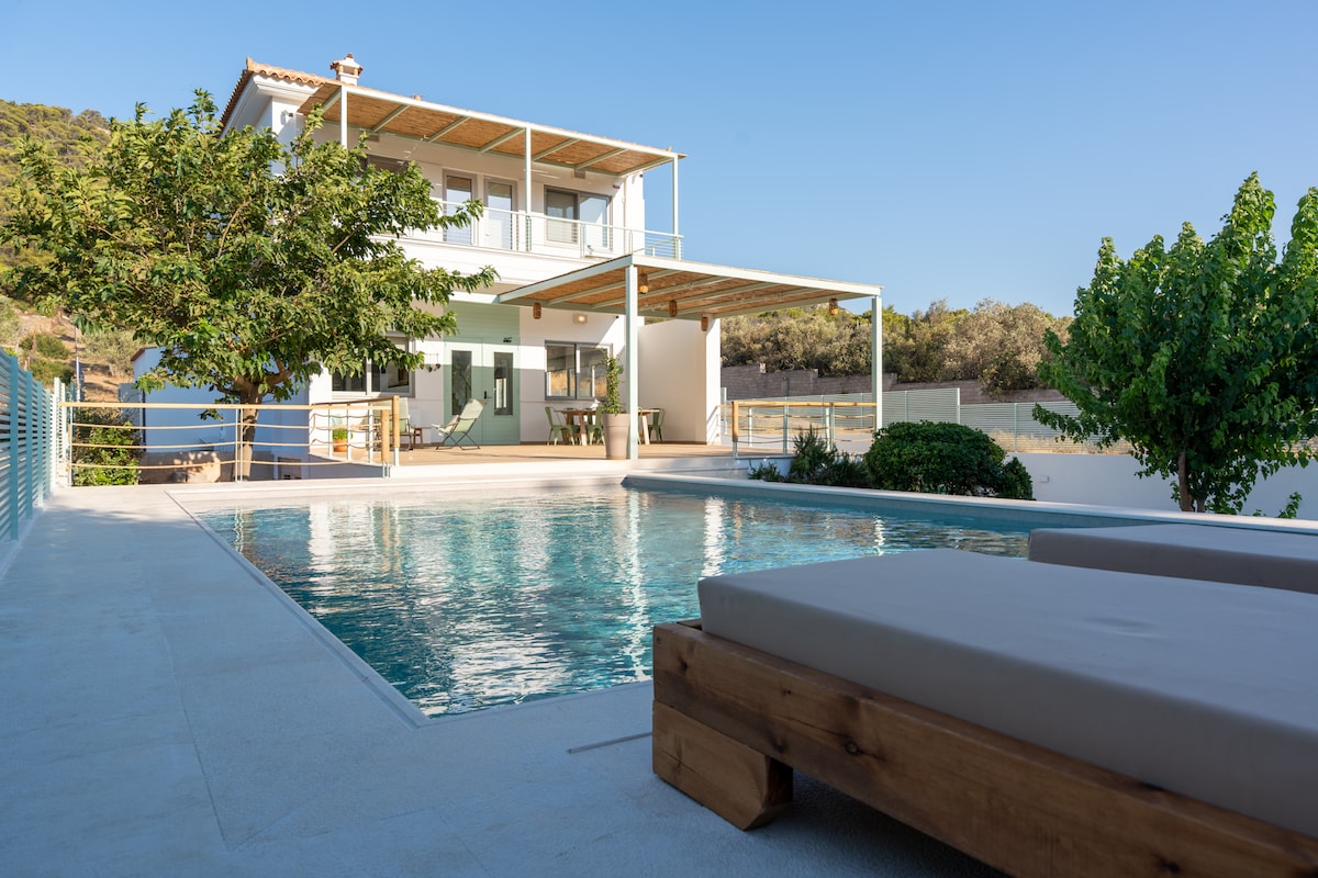 Una casa de campo moderna, un entorno elegante pero familiar para un lugar creado aquellos que buscan un ambiente tranquilo entre la naturaleza, la buena comida y la belleza. La isla de Evia ofrece la mejor solución para aquellos que quieren disfrutar de las vacaciones de verano cerca del mar, pero no quieren perderse todo el confort que ofrece la gran ciudad, a sólo 99 km de Atenas ,130 km del aeropuerto de Atenas. Amplios espacios privados al aire libre, con piscina privada y jardín. Vive una experiencia única, entre la cultura, la relajación y la naturaleza.