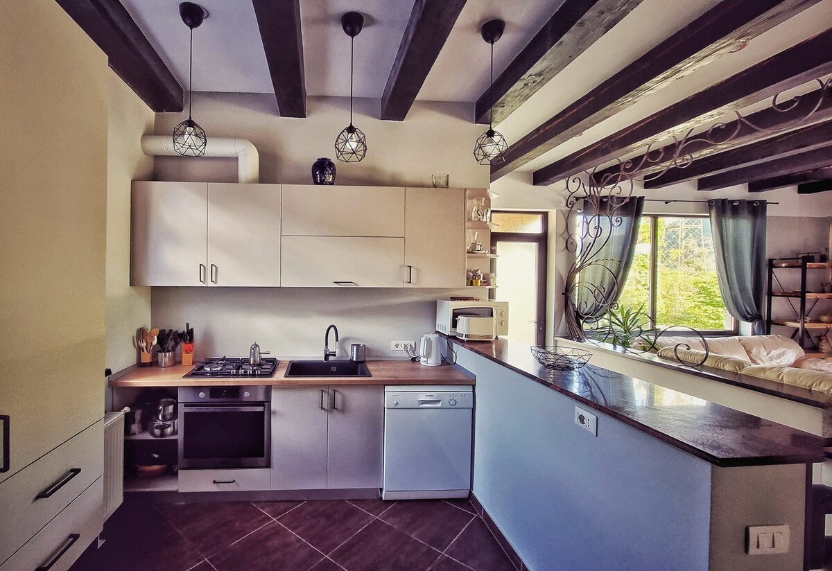 Este alojamiento único tiene mucho espacio para que disfrutes con los tuyos. Es ubicado en la naturaleza, con aire fresco y tranquilidad. Tiene cerca el bosque y rio Bistrita, tanto como un parque para jugar los niños y hipódromo. En la casa dentro tenemos una habitación donde los niños como tanto los papás pueden jugar diferentes juegos y disfrutar . Es un lugar perfecto para relajarse totalmente y salir del cotidiano.
