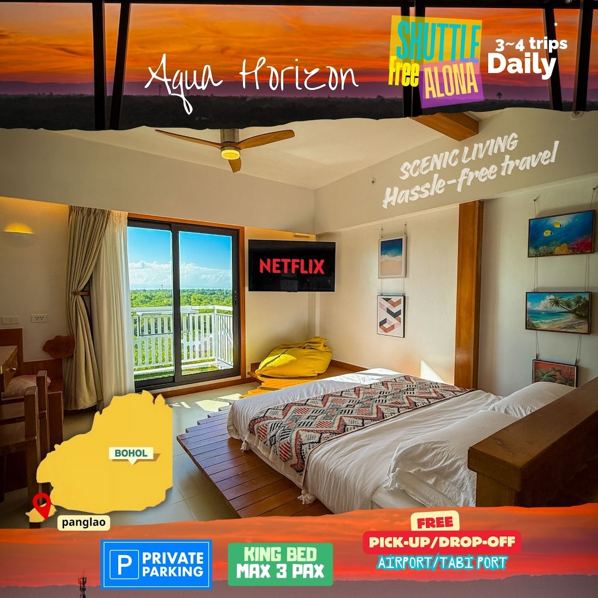 AquaHorizon Panglao SunsetView 2 Art Condo Cama King