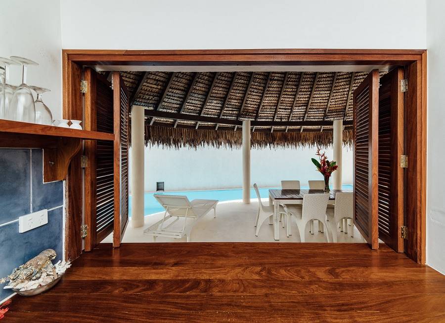 Las villas están construidas para captar la brisa, con rejillas para la ventilación cruzada, techos de natangora tradicionales para protegerlo de los elementos y un baño parcialmente abierto para ver las estrellas mientras está en la ducha. Todas las villas son amplias y son atendidas diariamente por mujeres locales de la aldea de Pango, que está directamente detrás de las villas. Cada villa tiene muebles de calidad por todas partes. La seguridad se proporciona por la noche.