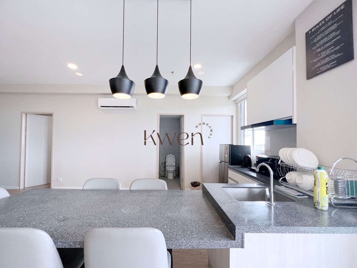 Planta alta y habitación más espaciosa con vistas panorámicas al mar de 3 bahías y al atardecer Cerca de centros comerciales y cosas importantes que hacer Se encuentra en el corazón de la ciudad. Está justo al lado del muelle de Jesselton, por lo que puedes caminar hasta el recorrido por la isla. La seguridad en el nuevo edificio es exhaustiva, por lo que es tranquilo y seguro. • 2 dormitorios: 1 cama tamaño queen y 2 camas individuales. - 2 sofás cama • Sala de estar - Televisión inteligente, aire acondicionado - Wifi gratuito • Cocina - Purificador de agua - Refrigerador, congelador, congelador - Microondas, encimera eléctrica, cocina y cena. - Hervidor eléctrico • 2 baños - Calentador de agua, secador de pelo - toallas, jabón para el cuerpo, champú, lavado de manos • Comestibles • Piscina infinita. < Tours and Breakfast Inquiries > Recogida/entrega en el aeropuerto (por una tarifa adicional), Firefly, Golf, Rafting, recorrido por la isla, paseo por el mar, ocio marino, pesca, Montaña Kinabalu, Tour nocturno, Callie Bay, Folk Village, Masaje, mariscos, comida Hanky