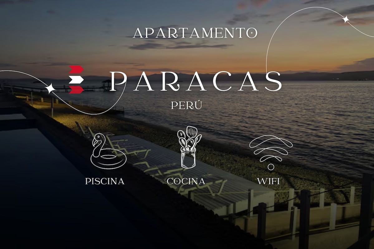 Apt near sea+Kitchen+Pool+WiFi+Lot+TV+AC@Paracas