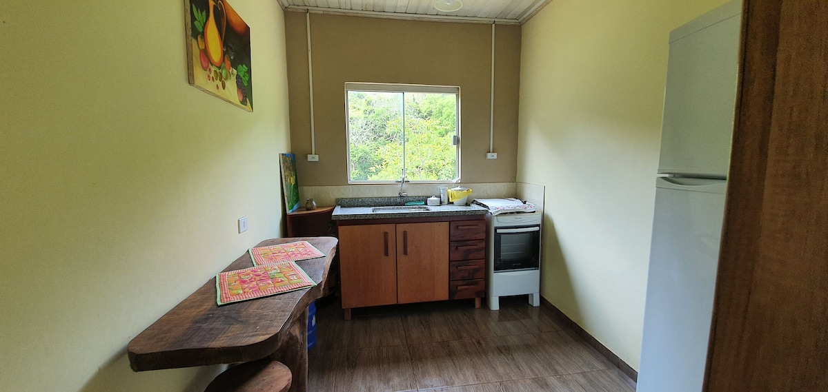 Acogedora cabaña construida en piedra y madera insertada en la mayor reserva privada de protección ambiental (appa) de Cunha: reconocida por el proyecto de CONEXIÓN DE BOSQUES ATLÁNTICOS y por el Fondo para el Medio Ambiente Mundial - FMAM. Equipada con INTERNET de 100 Mb. Perfecto para el contacto directo con la naturaleza; cascadas (una junto a la casa y otra fácilmente accesible por un interesante paseo por el bosque). Muy cerca de la entrada de Pedra da Macela: 15 minutos en coche, o agradable paseo.