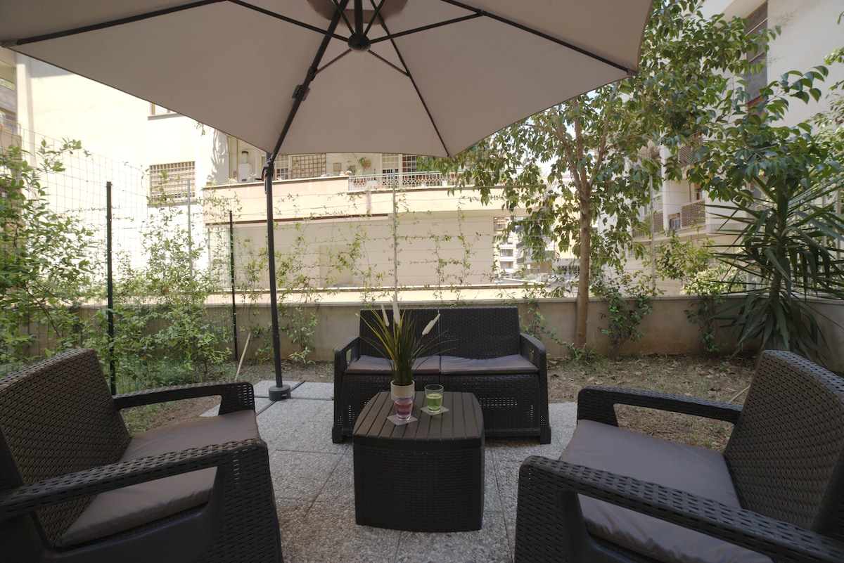 G&G Green Garden è un appartamento che offre fino a 5 posti letto, completamente ristrutturato e ultra funzionale. Al piano terra di un silenzioso condominio nella zona Nord di Roma. Dotato di ogni comfort, il suo plus è lo splendido ed ampio Spazio Esterno, dove poter trascorrere serate ed aperitivi in completo Relax all’aria aperta. Possibilità di POSTO AUTO in garage (costo 20euro giornalieri) Luogo adatto a famiglie con bambini, coppie ed amici, gruppi e colleghi di lavoro in Smart Working.
