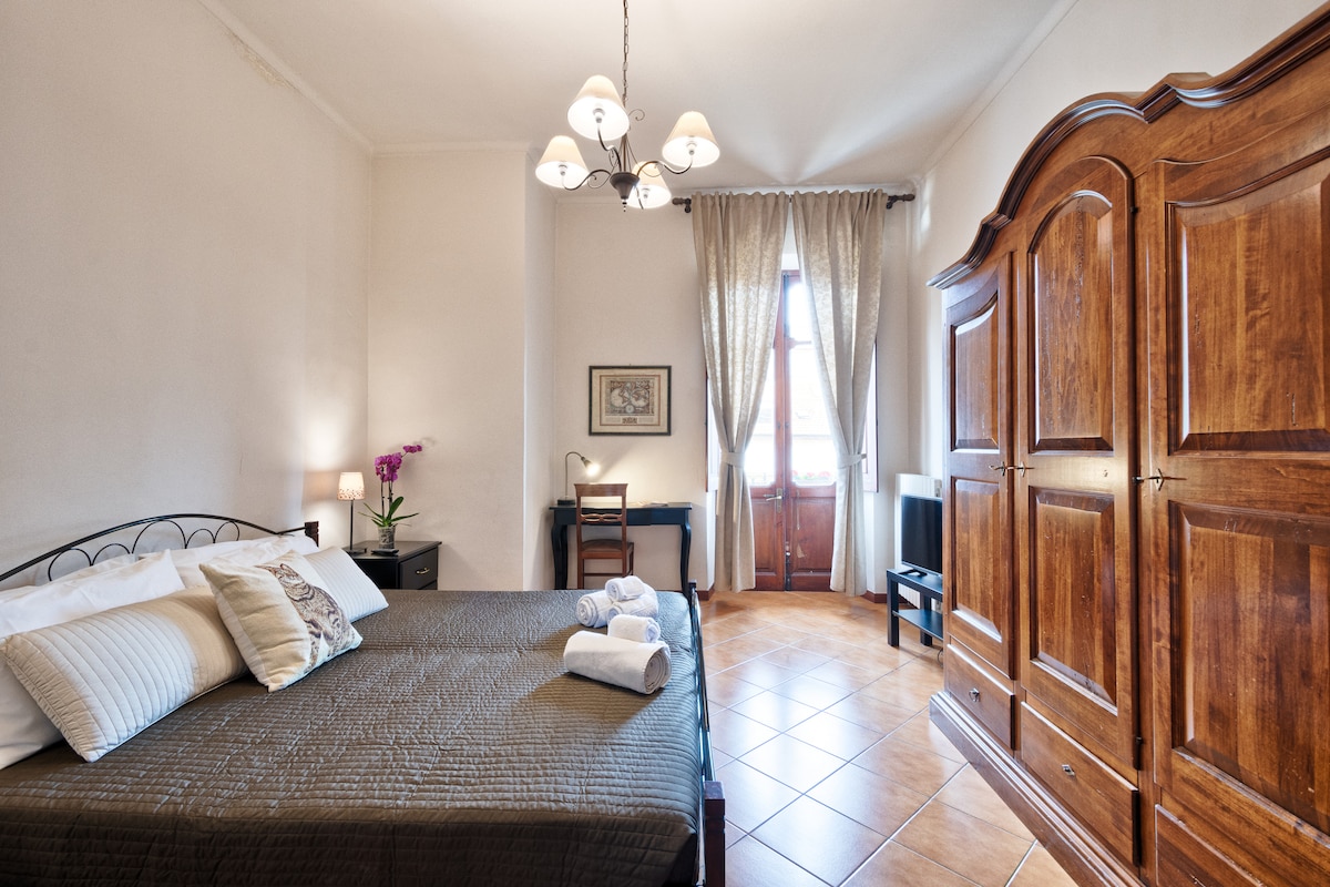 Amplio apartamento de dos habitaciones recién reformado que consta de dormitorio, cocina, recibidor y baño. Acogedor y elegante, el alojamiento está equipado con todas las comodidades: Smart TV de 55 pulgadas y conexión de fibra gratuita. Lavadora disponible para estancias largas. Cama individual con somier plegable para colocar en el dormitorio de matrimonio. Cuna de viaje disponible con sábanas y trona. Alojamiento situado en el primer piso sin ascensor.