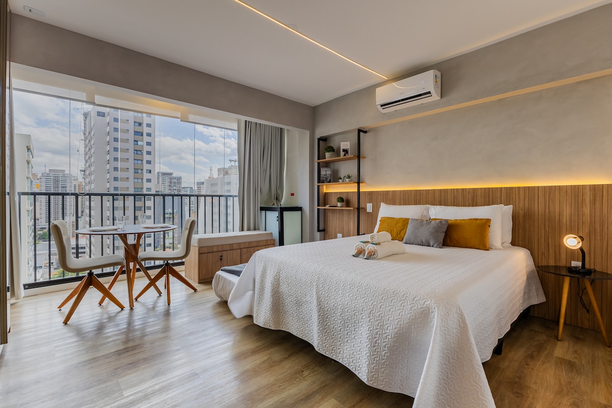 Studio moderno a menos de 500m do Allianz Parque