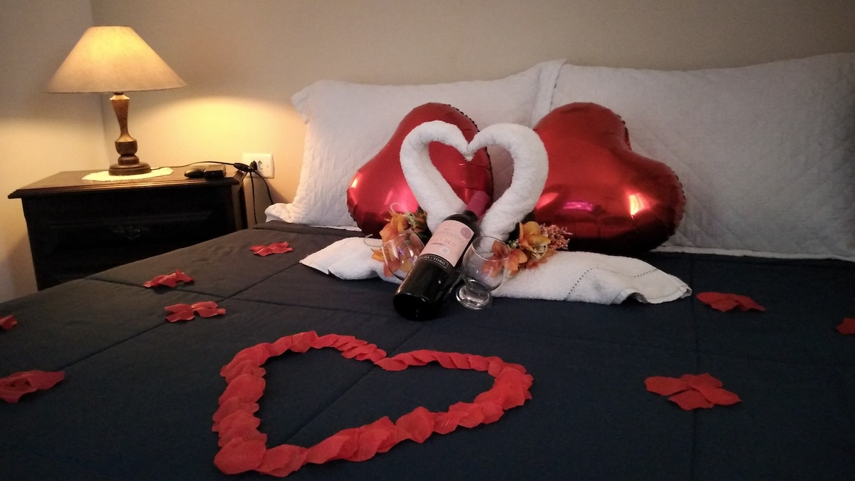 Chalé romântico, 5 min centro, ar cond e hidro.