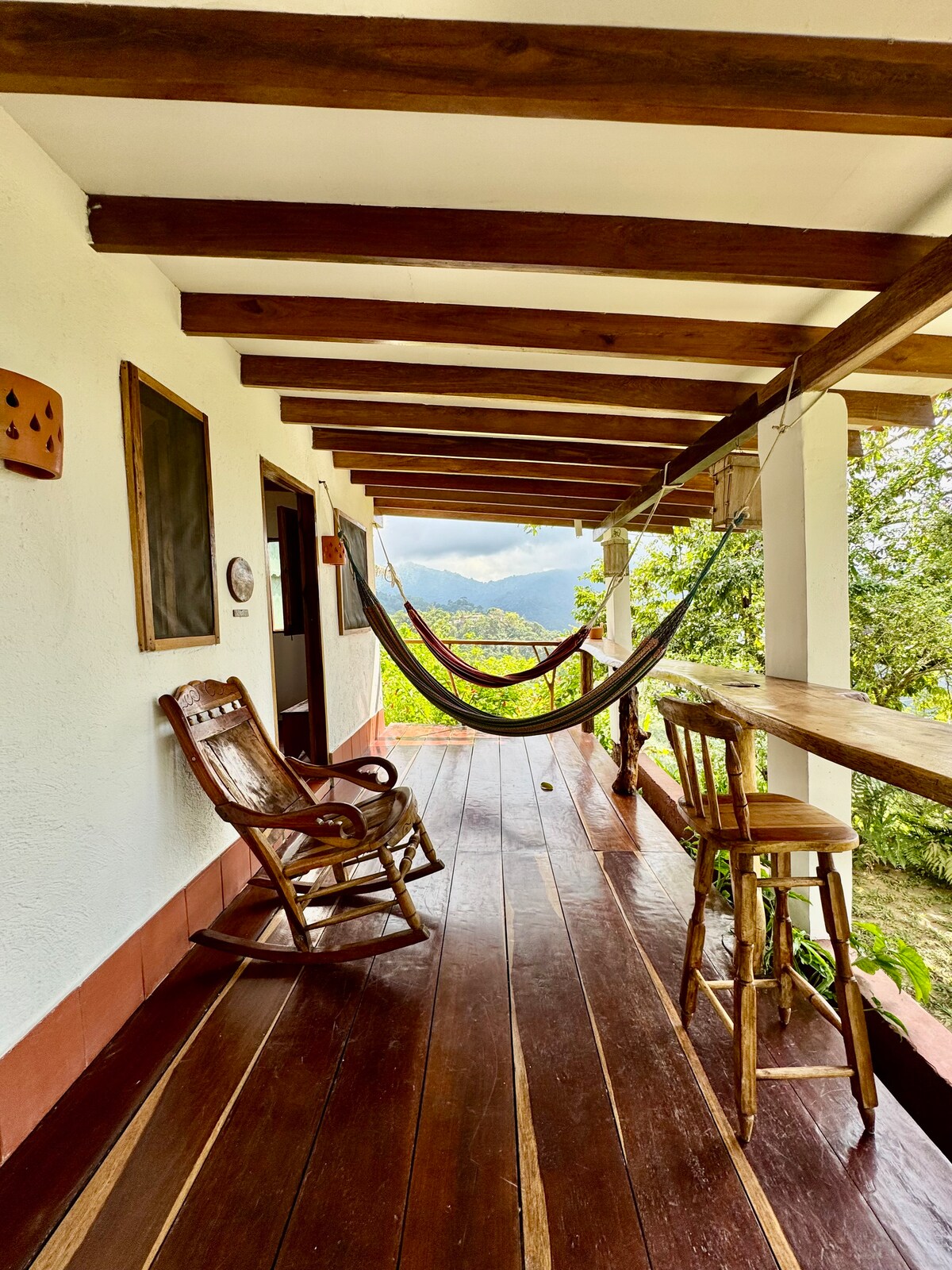 Welcome to our charming Deluxe Room at Hostal Magdalena! Guachaca is one of our most spacious rooms with a balcony with a hammock and air conditioning. It shares a bathroom with one other room. You can choose between a king-size bed or two single beds. For 60,000 COP, a trundle bed can be added for a third person (breakfast included). It includes a full breakfast and Sierra Nevada coffee in the morning.