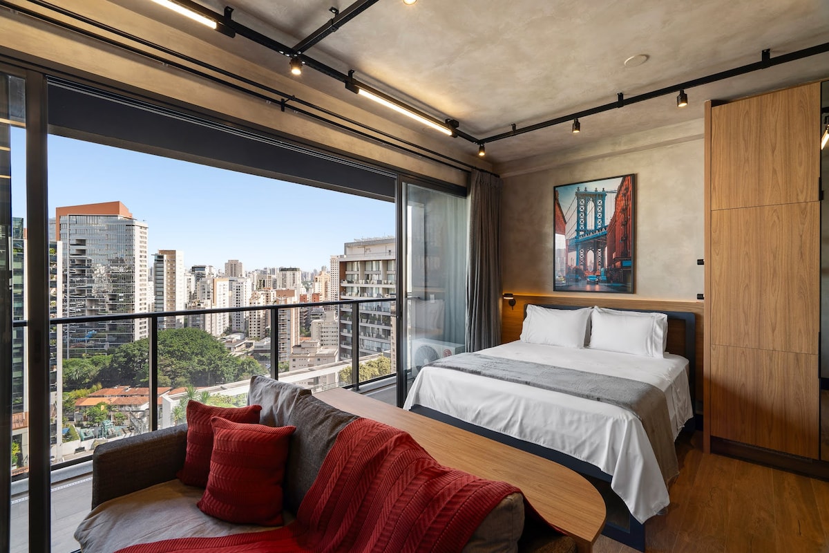 Viva uma experiência única nesse novíssimo Loft Duplex com vista espetacular na melhor região de São Paulo. Experiência e Tecnologia > vista deslumbrante > automação dos ambientes > wi-fi de alta velocidade > smart TV com acesso a internet Conforto e Sofisticação > ar condicionado quente frio > persianas black out > cama king Excelente Localização > a 300m do metrô Oscar Freire > vaga de garagem Condomínio Completo > piscina no rooftop > academia > coworking > portaria presencial 24h